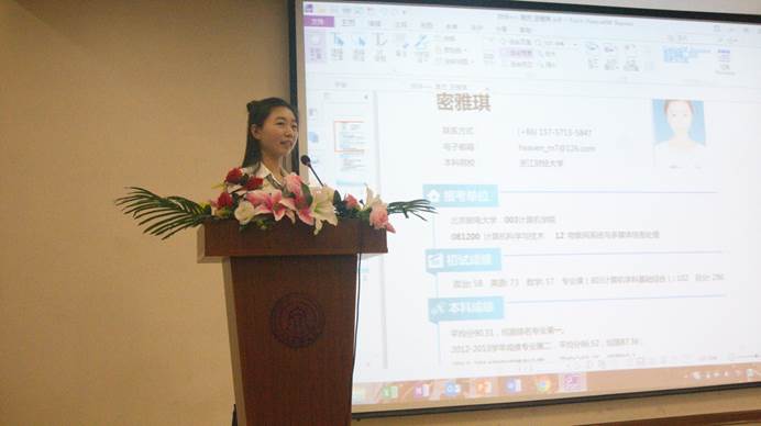 分享会在轻松热烈的氛围中拉开帷幕,首先由考入北京大学法律专业的贾冉学姐发言。在她看来,兴趣是最好的老师,正是她对法律的兴趣才支撑她走过了艰苦的考研时光。考研难在坚持,她建议同学们要理性地评估自己,为自己定一个合适的目标院校,始终谨慎并保持乐观。接下来,考入辽宁大学经济学专业的张馨慧学姐为大家总结了数学的复习方法,分享了自己的复习计划,并对同学们暑假期间的复习提出了建议。她谈到考研要坚定信念,注重效率并保证充分的复习时间。之后,考入伦敦大学学院的王钰学姐也为大家详细讲解了申请国外研究生的注意事项及方法。特别的是,顺利考上同济大学管理科学与工程专业的孔祥豆学长专门为同学们印发了一些传单,上面列出了他推荐的若干关于考研的微信号、微博、视频和考研辅导书。他强调了英语作文的重要性并提到了考研过程中同学互相激励的作用,孔祥豆学长以过来人的身份警示大家,考研重要的不只是结果,考研的过程更重要,不管结果如何,我们都能从中学到很多。而考入北京邮电大学计算机科学与技术专业的密雅琪学姐则向我们强调了复试的重要性以及她在复试中逆袭的经验。她告诉我们要和导师经常交流联系,摆正心态,考研的复习过程中要脚踏实地,切忌浮躁。