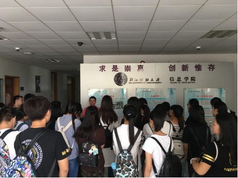 2016年9月21日,信息化实验室主任章华老师带领2016级信息1班全体同学参观了信工学院学院楼。章老师生动细致地向同学们介绍了信工学院与信息专业的历史。在他的介绍下,同学们认识到了作为信息人,需要掌握高超的技术,高尚的道德,求知的精神,同学们需要在大学中修炼这一切,将之内化为本身所有之物。
