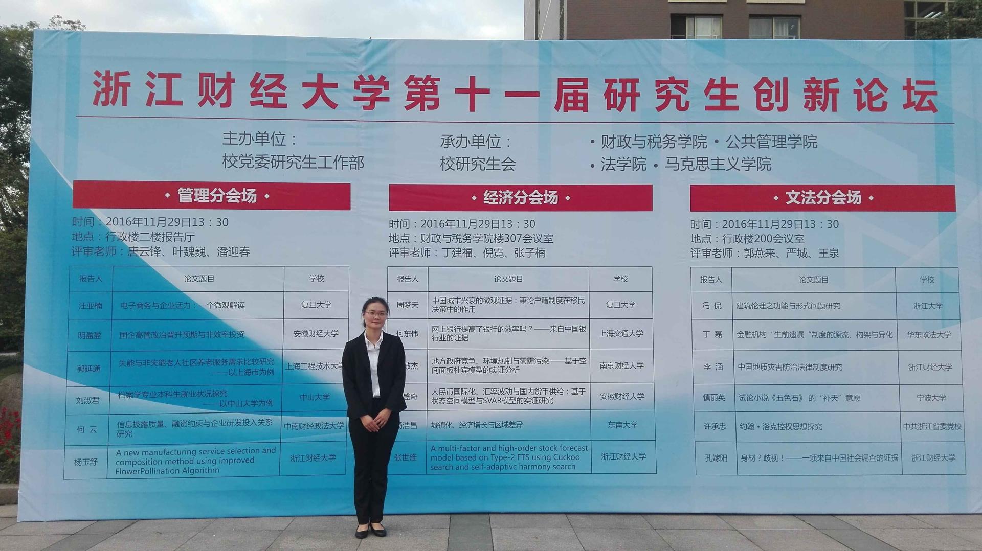 近日,第十一届研究生“博文节”创新论坛圆满落幕,金年会研究生积极参加了此项活动并获佳绩-15级企业管理专业研究生杨玉舒和14级管理统计学专业研究生张世雄分别获“博文节”创新论坛一等奖和三等奖。此次创新论坛分为经济纵横、管理创新、人文荟萃三个分会场,吸引了来自复旦大学、上海交大、浙江大学、上海财经大学等高校100余名研究生投稿。金年会杨玉舒和张世雄分别参加管理创新和经济纵横分会场,并在分会场做精彩的论文报告。