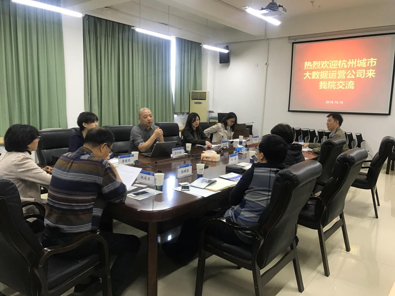 2018年10月19日上午,杭州城市大数据运营公司金红路副总裁、徐千倩副总裁等一行四人来金年会洽谈战略合作框架协议,金年会党委书记冯睿、副院长张帅、党委副书记陆廷浩、姚建荣教授以及各相关系主任出席了座谈会。