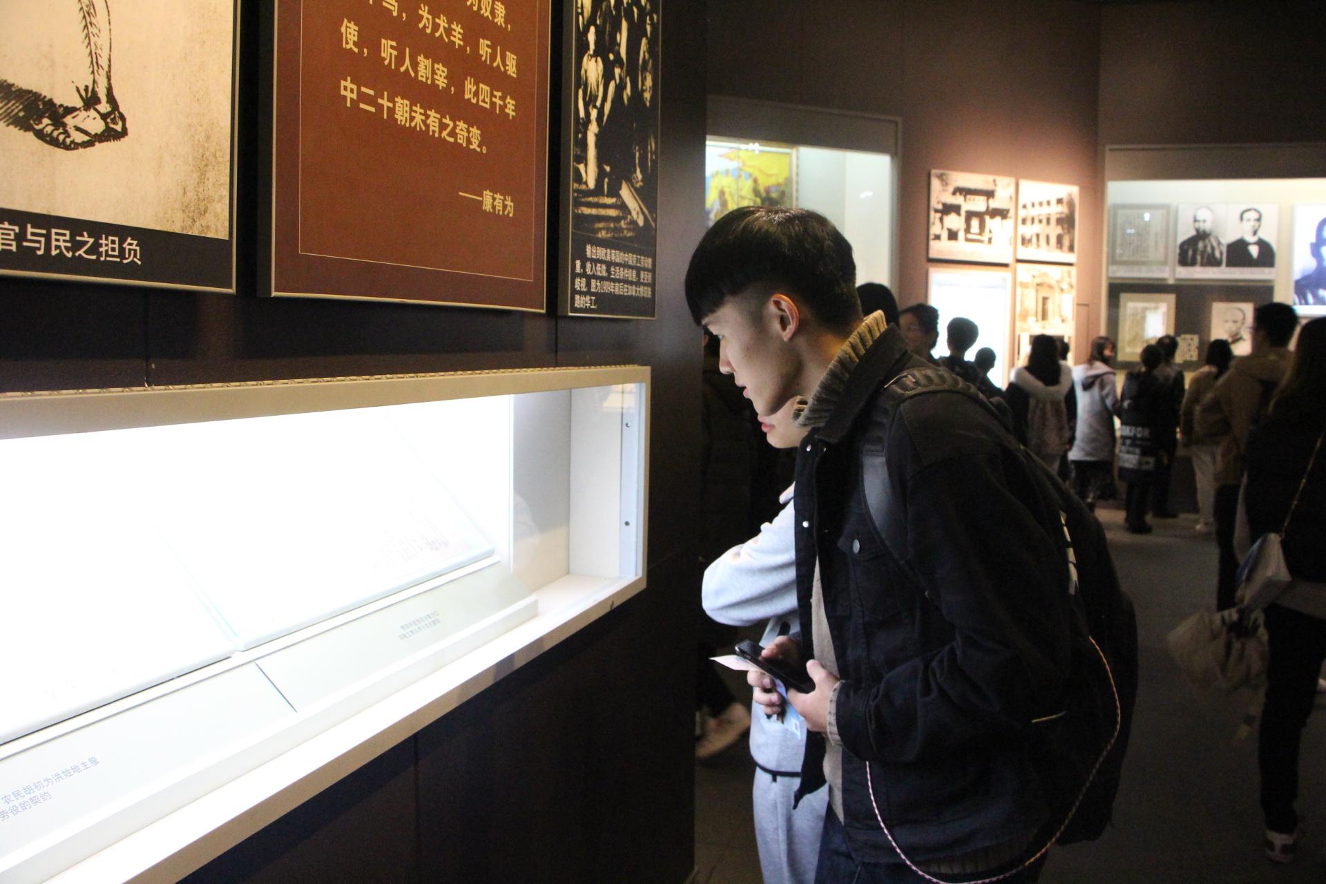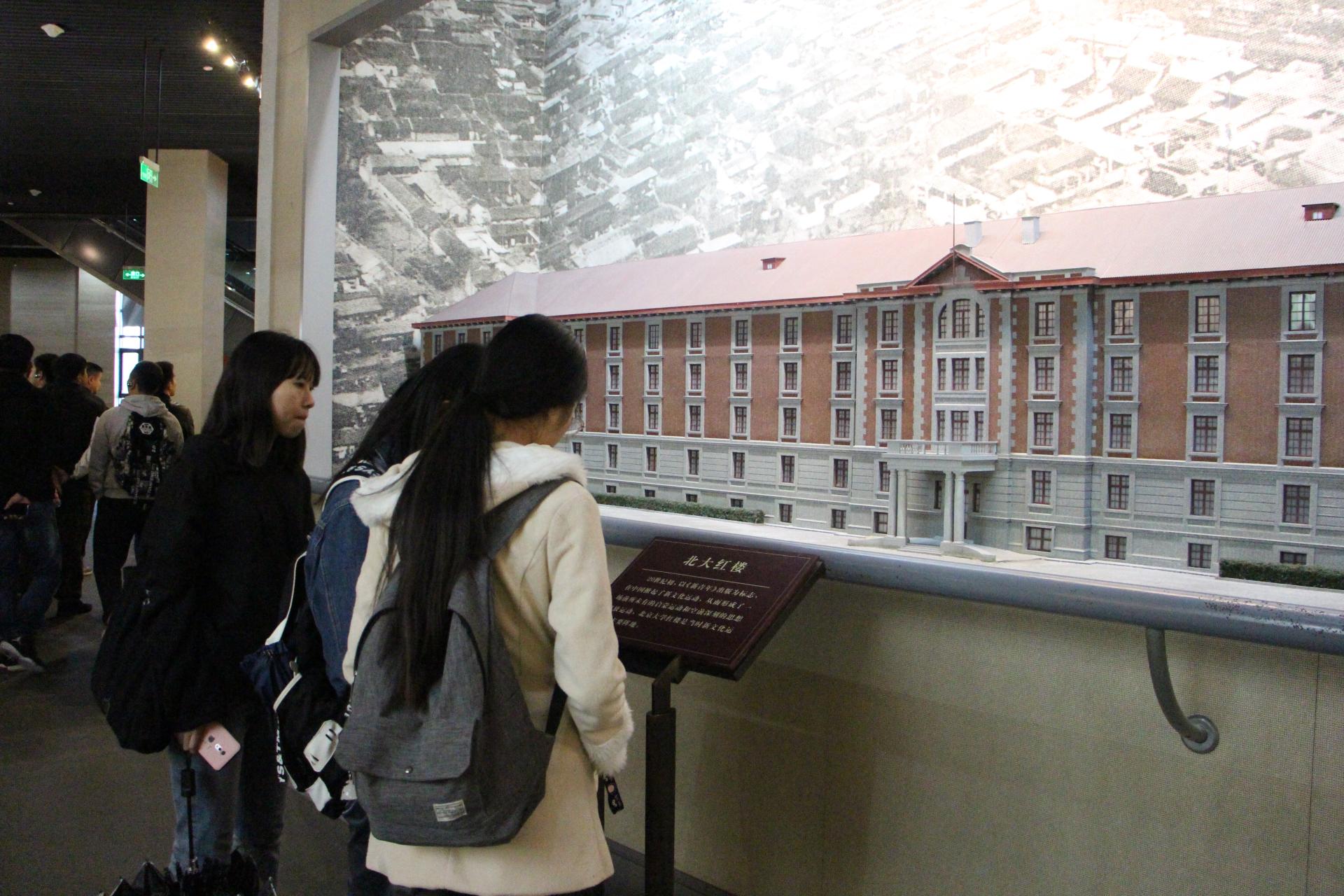 各支部在纪念馆前合影留念后,便在讲解员的带领下,穿梭于纪念馆中,了解中国近代发生的一系列重大事件、资产阶级兴衰史,以及近代以来党的发展、奋斗史。纪念馆中北大红楼、南湖红船等仿制实景使学生们近身感受当时的场景与氛围,进一步感受到国家发展的艰辛。透过仿制实景,当年那些激烈的战争与严肃的会议仿佛浮现在眼前。