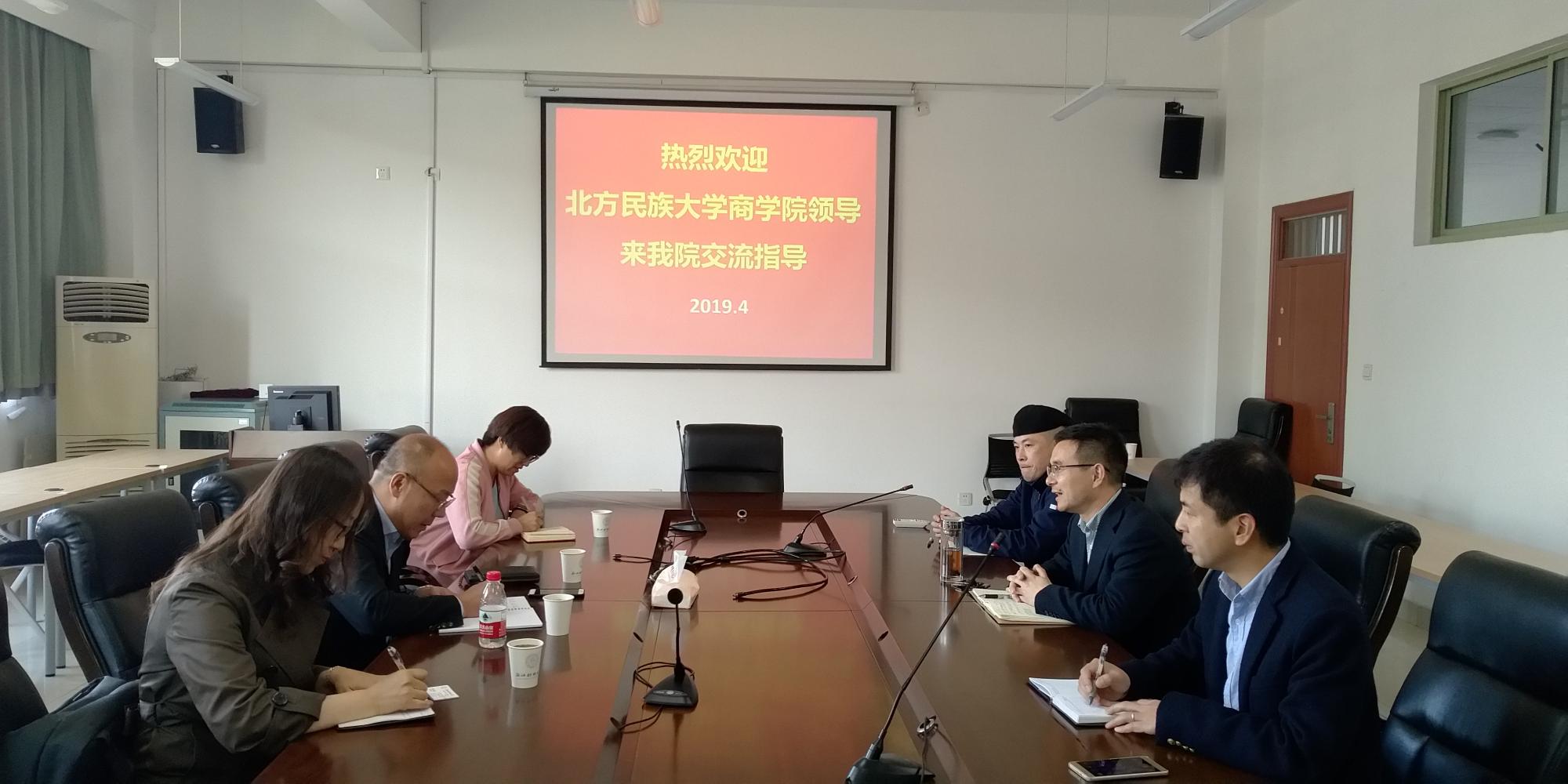 4月1日,北方民族大学商学院王院长一行来金年会调研交流工作。教学副院长陈远高等参加了本次交流会。