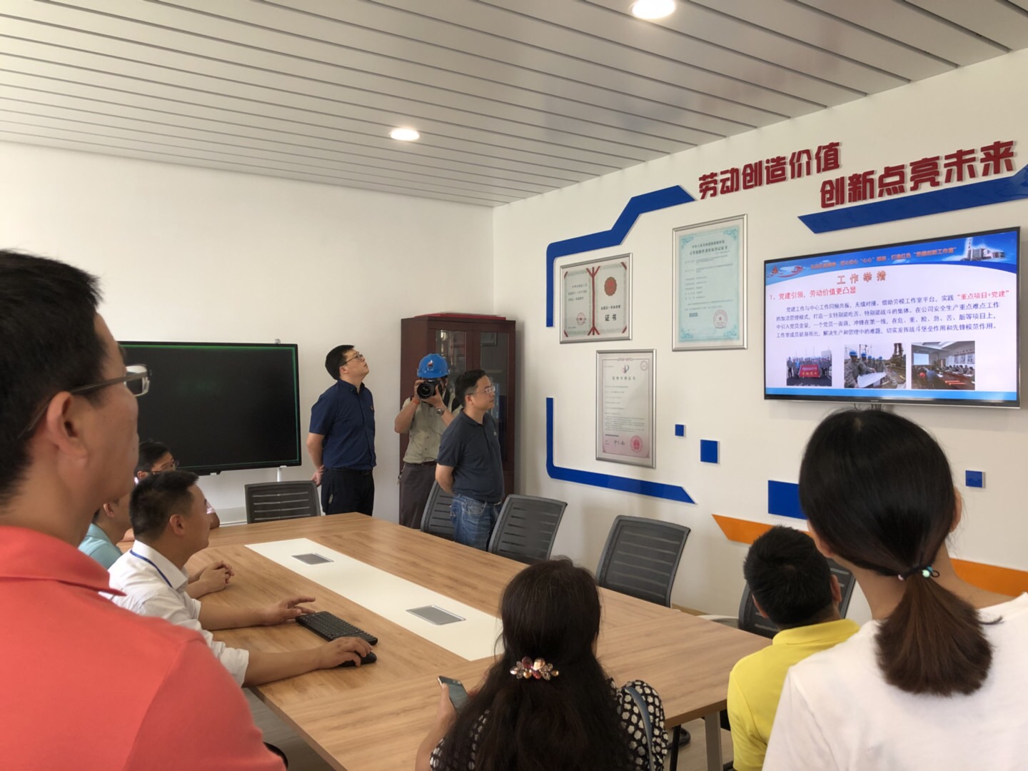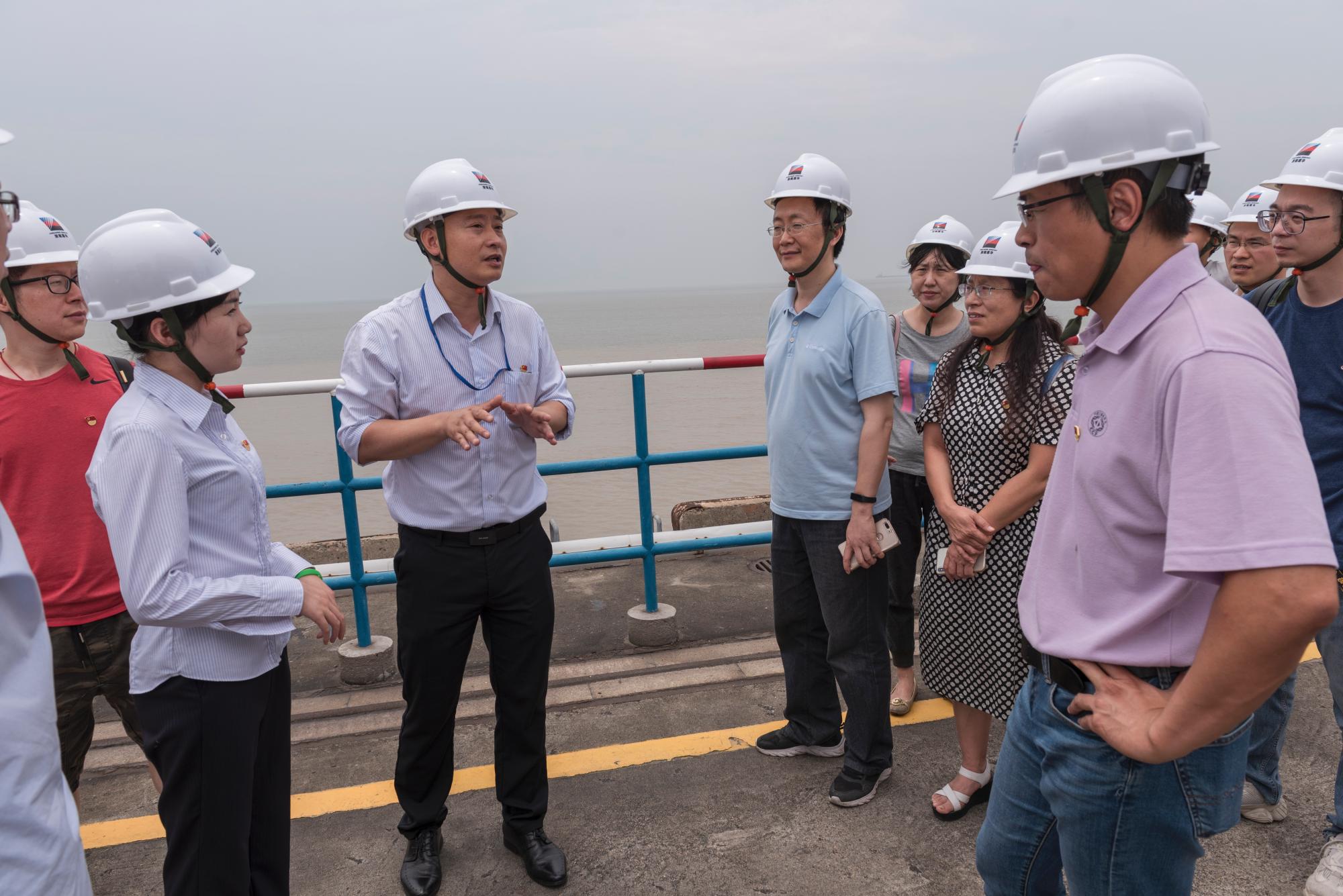 浙江浙能嘉华发电有限公司的工会办公室余涤清主任首先向各位党员讲解了公司的基本状况和党建工作情况,浙能嘉华以“1235闪光党建”为抓手,组织支部创新活动,不仅调动了厂内职工的生产、生活积极性,在传承党建文化,挖掘党建闪光点的同时,以真实的画面向社会传递了工业企业的声音,传播工匠精神和企业家精神的正能量,这也为金年会党建工作提供了宝贵的经验。随后全体党员参观了电厂环保能源岛模型、超低能排放纪念石、百万机组集控室、智慧燃料、一期码头、宋振明国家劳模工作室(红心服务站)等地点。