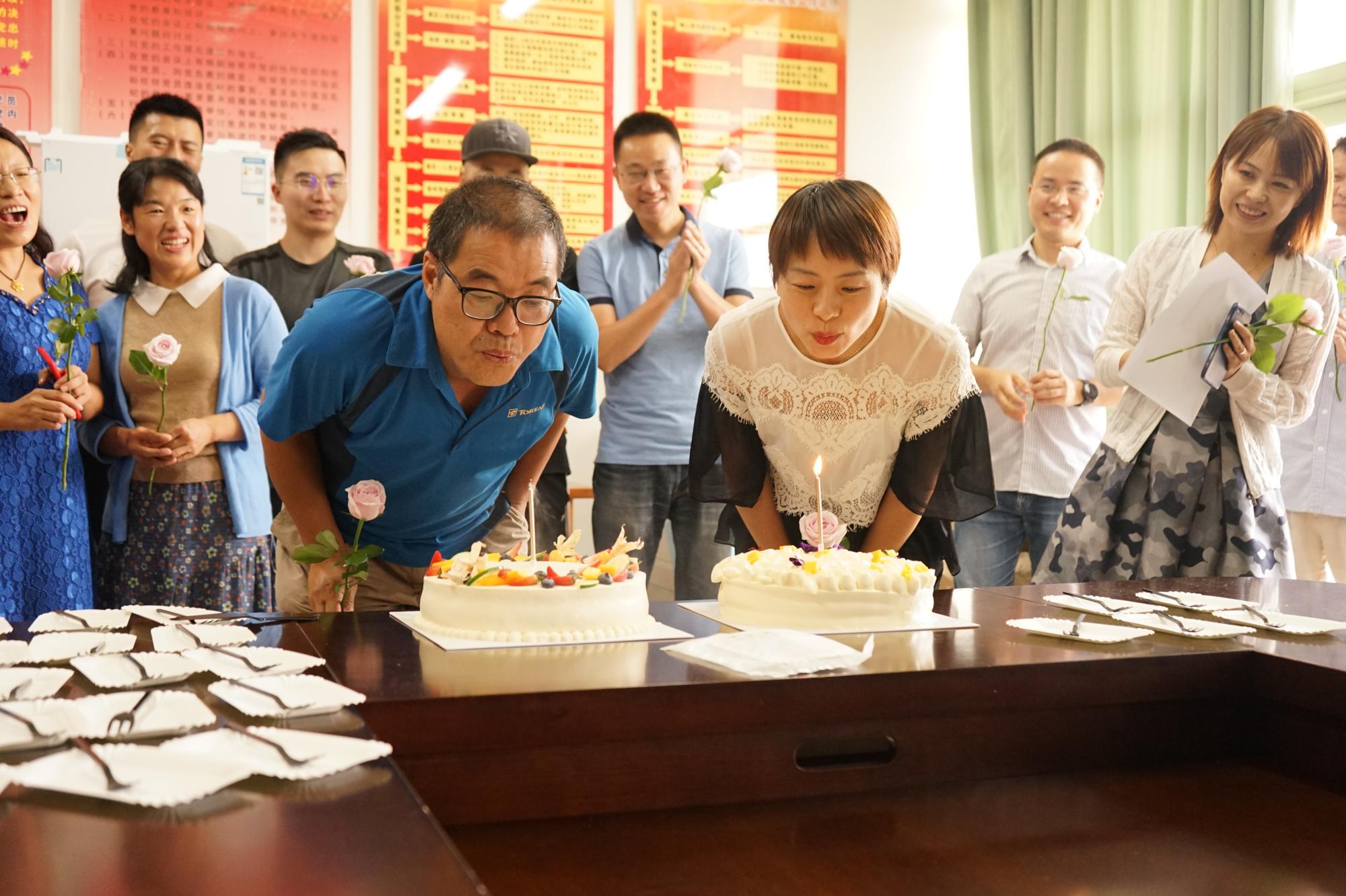 集体生日会由学院党委副书记兼工会主席陆颋浩主持。学院院长张文宇为每位寿星送上鲜花,并代表学院为寿星送上生日祝福。随后,全体寿星一同合唱生日歌,在歌声中一同吹灭生日蜡烛。由寿星代表王继林老师和朱胤老师共同切开生日蛋糕,并为每位寿星分发蛋糕,分享生日的快乐。