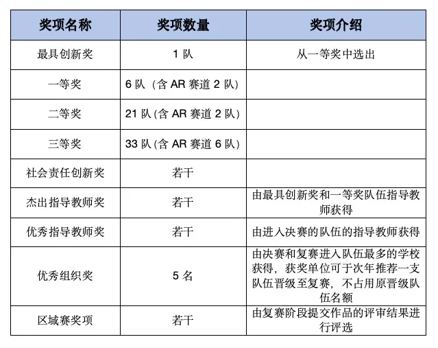 注:每项得分不得低于该项满分的60%,如单项分数不达标即视为淘汰。参赛作品主要成果如非在竞赛期间完成,则酌情减分;每个阶段的成绩不带入下一阶段。