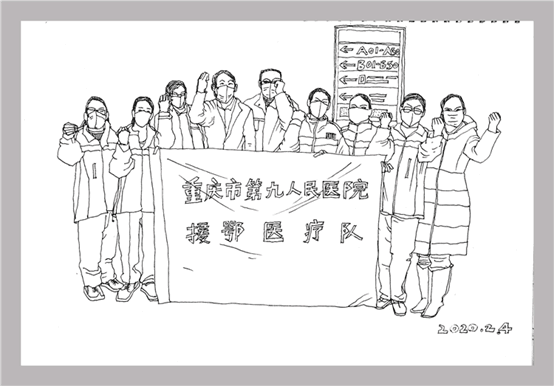 《生力军》:这已经是重庆市第九人民医院第三批出征的队员了。一定要平安,我们期盼你们胜利的消息!