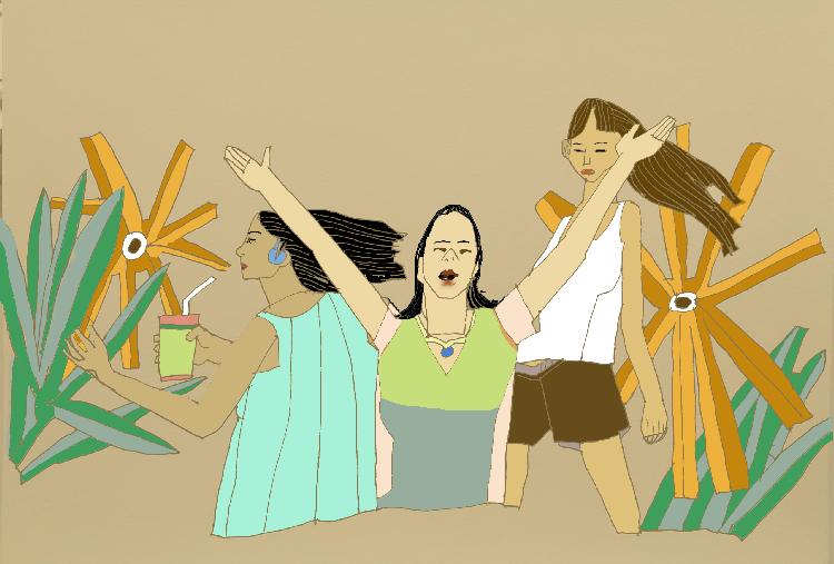 这些画作中,有的是小女孩在抱着自己的小猫相视而笑;有的是安静的女孩在白云飘过的窗边涂鸦绘画;还有的人在修剪花枝、做操,或者制作木工活。
