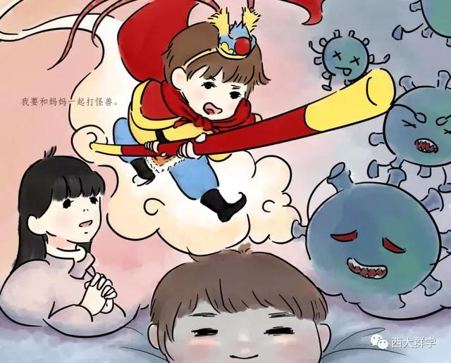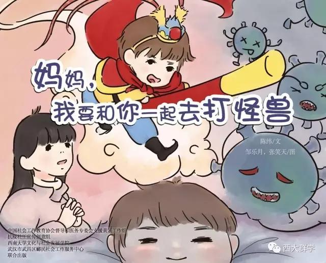 在参加社会工作教育协会督导和医务专委会支援黄冈工作组的工作中,beat365在线唯一官网登录社会工作系陈纬老师听到了很多医护人员与孩子分离,孩子万般思念父母的故事。有感而发,她专为医护工作者和他们的家庭写了一个故事《妈妈,我要和你一起去打怪兽》,并由文化与社会发展学院2017级学生邹乐月、张笑天为故事配图,做成绘本。绘本展现了在医院工作的妈妈参与抗击新冠肺炎疫情后,孩子元元在家努力和妈妈一起抗击病毒的故事,用生动易懂的语言为孩子解惑,帮助小朋友消除恐惧心理,引导他们看到和理解妈妈的工作,今后也要做打“怪兽”的小英雄。