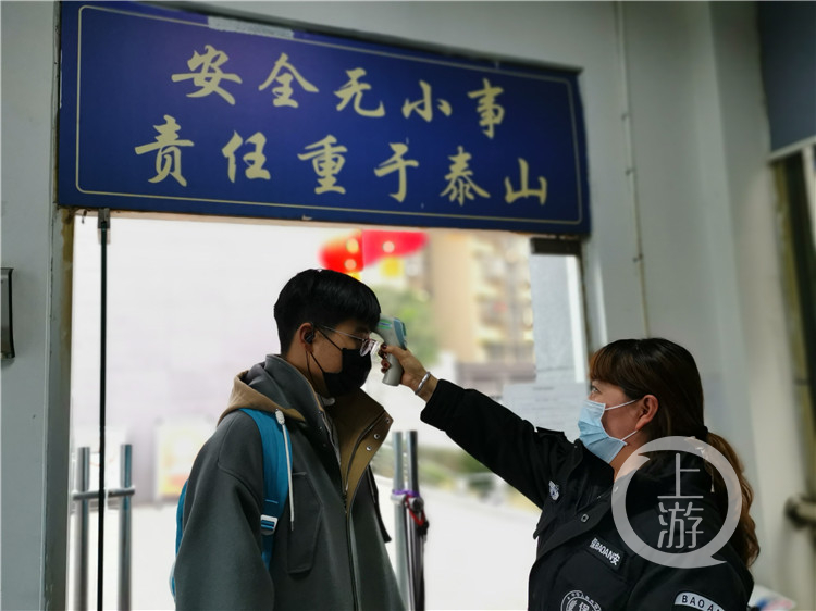 “所有进校人员须出示有效证件、佩戴口罩并接受体温检测,体温超过 37.3℃的,坚决不准进入,并报北碚卫生健康部门和社区按规定流程处理。”复课后,相关负责人表示,走读学生行课期间每天凭校卡出入并进行体温检测登记,住读学生行课期间除特殊情况外一律不得离校,需离校者必须履行请假手续。