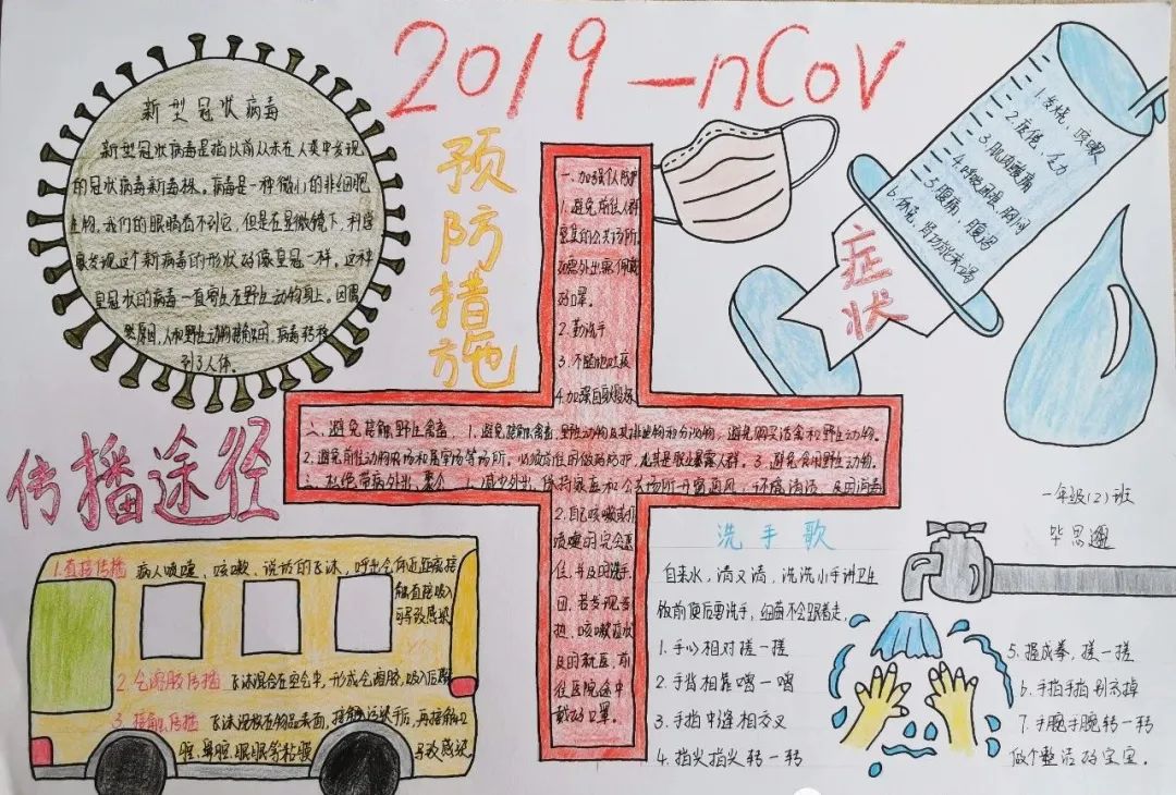 ●作品介绍:该手抄报作品图文并茂,图形元素丰富,抓住了物体的特征。同时,写出了预防顺口溜、预防方法等知识,并向白衣天使们致敬。