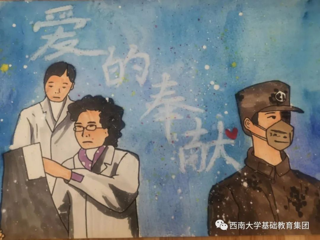 虽然不能像医务人员那样前往一线去救死扶伤,但是作为学生的我,有义务,也有责任为此次抗击疫情尽自己的微薄之力,为此我绘画了一副有关抗击疫情的绘画作品,想呼吁大家,在疫情面前人人有责,同时让人们意识到这次疫情的严重性,这场疫情不仅是国家之战,也是全民之战。一方有难,八方支援。中国人民齐心协力抗击疫情,我相信美好的明天就在不远处向我们招手。”