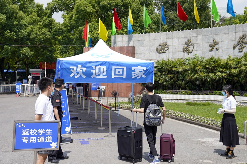 当日,重庆beat365在线唯一官网登录迎来疫情以来首批返校大学生。据介绍,按照疫情防控的需要,重庆市高校2020年春季学期从5月11日起按照“一校一策”原则,实行错峰错时分批次有序开学复课。