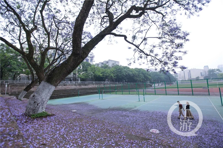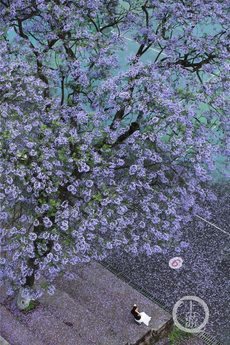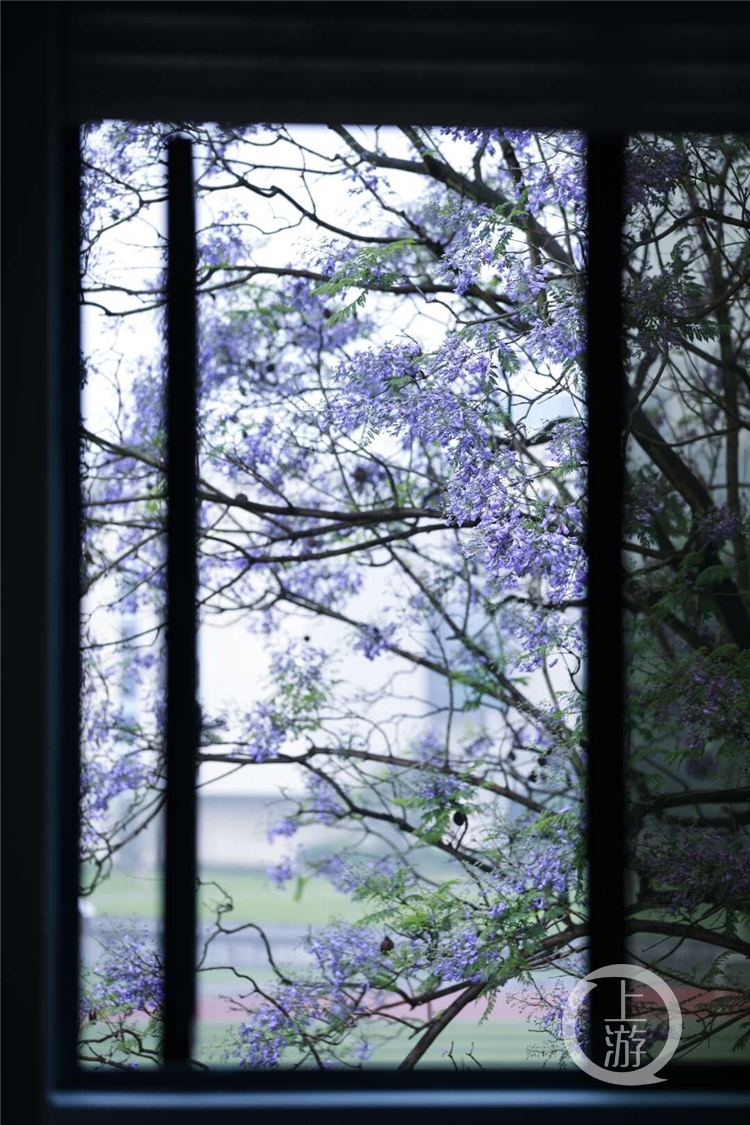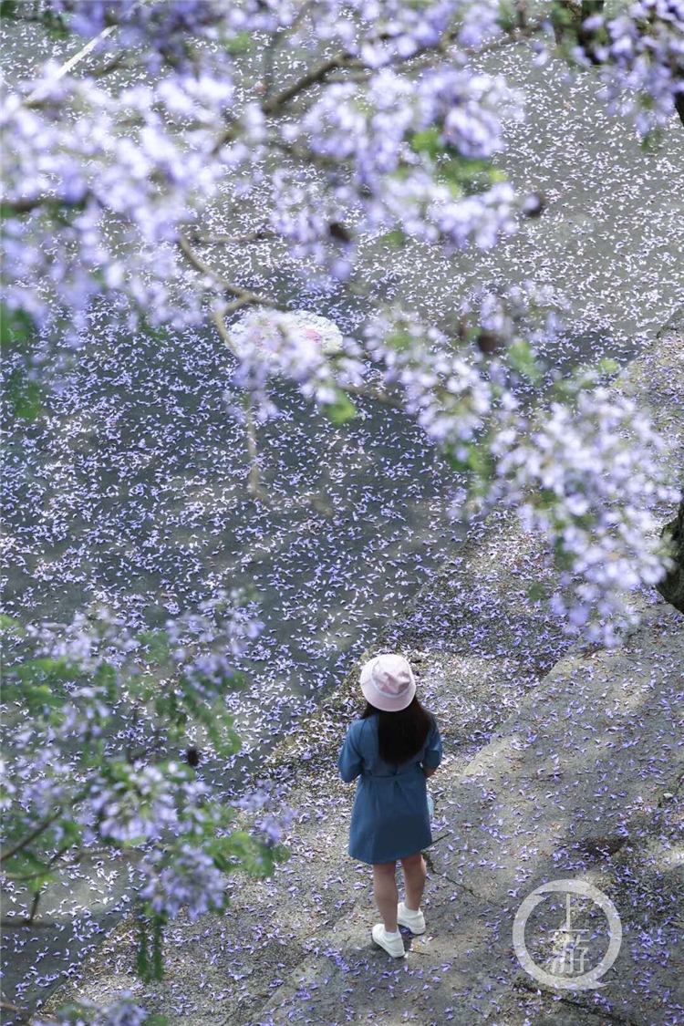 曹群羚告诉上游新闻·重庆晨报记者,她是于本月15日返校的,回校后就来到第四运动场旁边的蓝花楹树下“打卡”了。“今年的蓝花楹开得特别盛,加上最近天气不错,许多同学都会去拍照。”曹群羚说,自己是大四了,6月即将迎来毕业,因此蓝花楹既迎接了自己的返校,又将见证自己的毕业,甚至看着花飘落都有一丝伤感。