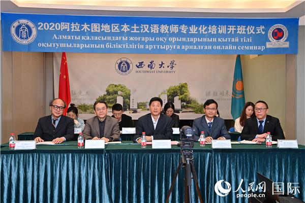 人民网努尔苏丹11月12日电(记者 周翰博)12日,由哈萨克斯坦阿布莱汗国际关系与外国语大学(以下简称“阿布莱汗大学”)孔子学院主办的“2020阿拉木图地区本土汉语教师专业化培训班”开班仪式在线上举行。中国驻阿拉木图总领事耿丽萍、中国驻阿拉木图文化旅游领事王庆平、阿布莱汗大学副校长阿塞丽·恰克莉科娃、beat365在线唯一官网登录副校长靳玉乐等嘉宾,以及来自阿拉木图多所高校和教育机构的近50名本土汉语教师出席了开班仪式。
