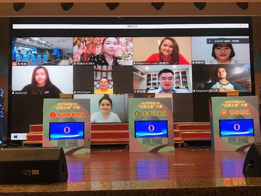 本次大赛不仅面向全球直播,同时对赛制进行了重大调整。受疫情影响,众多国际学子无法返回中国学习,为此,大赛特别设立“线上帮帮团”,邀请国际学子通过“云端”连线的方式参与比赛。本次比赛共分五个小组,每组有一名中国学子,以同台竞技的方式,让中外学生相互促进、共同进步,在赛程角逐中共同铭记艰辛来路,回顾百年征程。