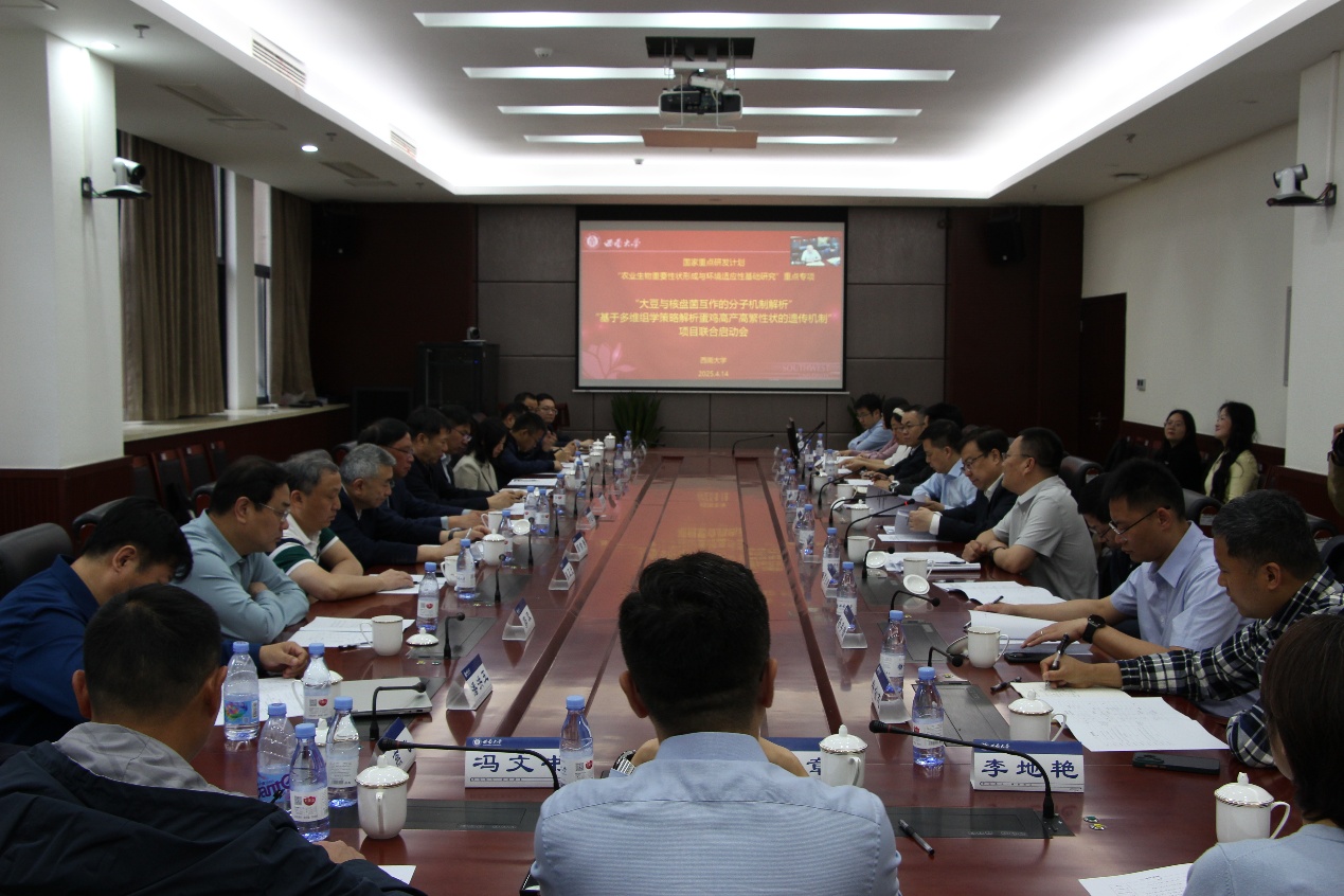 近日,由学校牵头的国家重点研发计划“农业生物重要性状形成与环境适应性基础研究”重点专项-青年科学家项目“大豆与核盘菌互作的分子机制解析”和“基于多维组学策略解析蛋鸡高产高繁性状的遗传机制”联合启动会暨实施方案论证会在隆平楼108会议室召开,校长王进军出席会议并致辞。