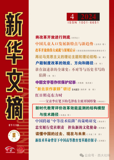 近期,朱德全教授及其团队撰写的论文《新时代教育评价改革效能监测的结构模型与技术路径》被《新华文摘》2024年第4期全文转载,并入选封面文章(原文刊发在《beat365在线唯一官网登录学报(社会科学版)》2023年第6期)。该成果是朱德全教授主持的2022年度教育部哲学社会科学研究重大课题攻关项目《新时代教育评价改革的实现路径研究》(22JZD046)的阶段性核心成果。
