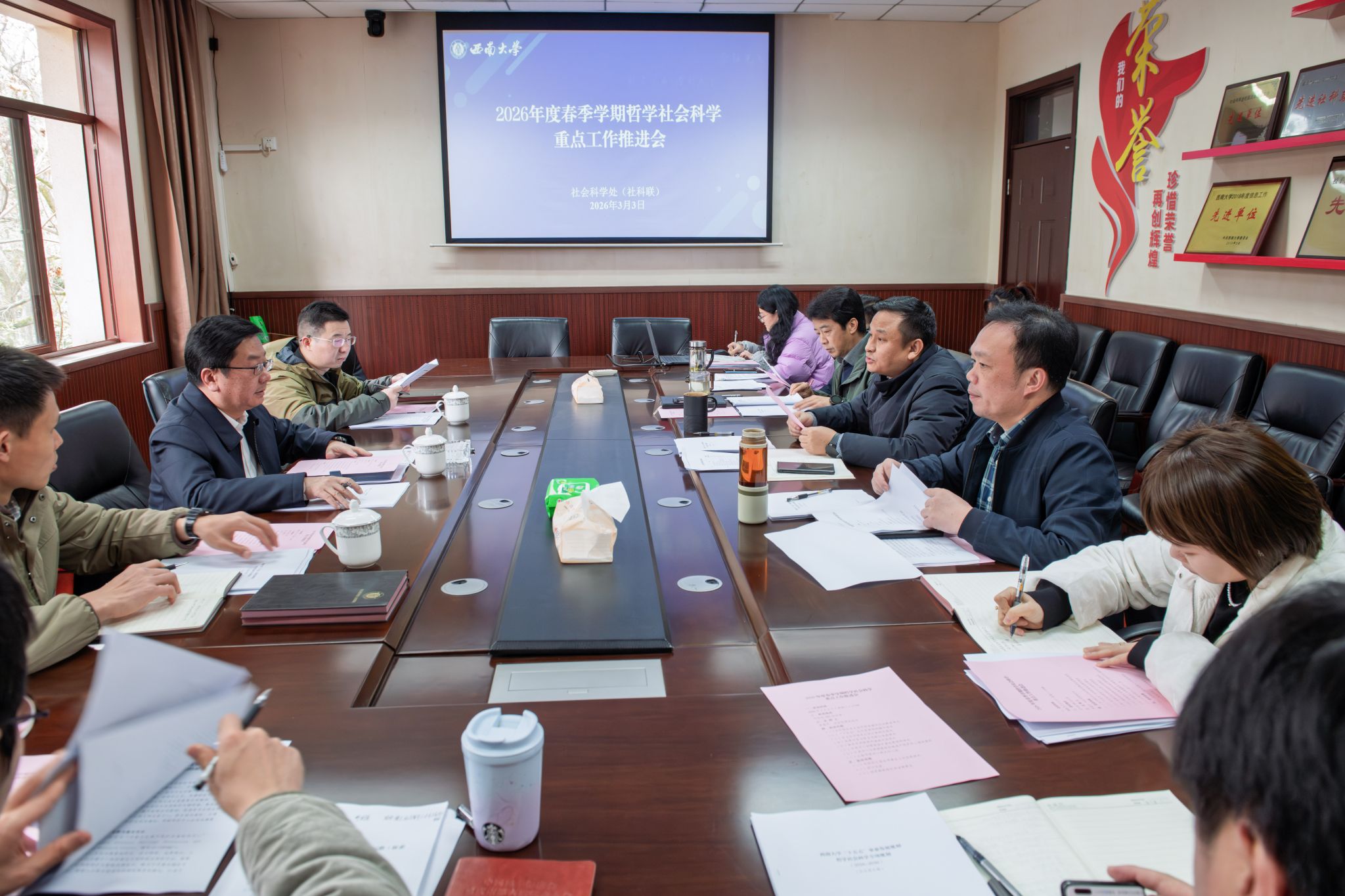 3月3日下午,社会科学处组织召开2026年度及春季学期哲学社会科学重点工作推进会,副校长邹芙都出席会议,党政办公室、社会科学处相关负责人参加会议。会议由社会科学处处长罗超平主持。