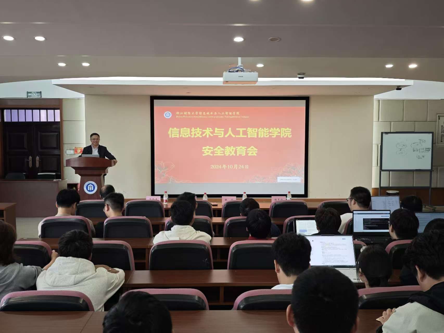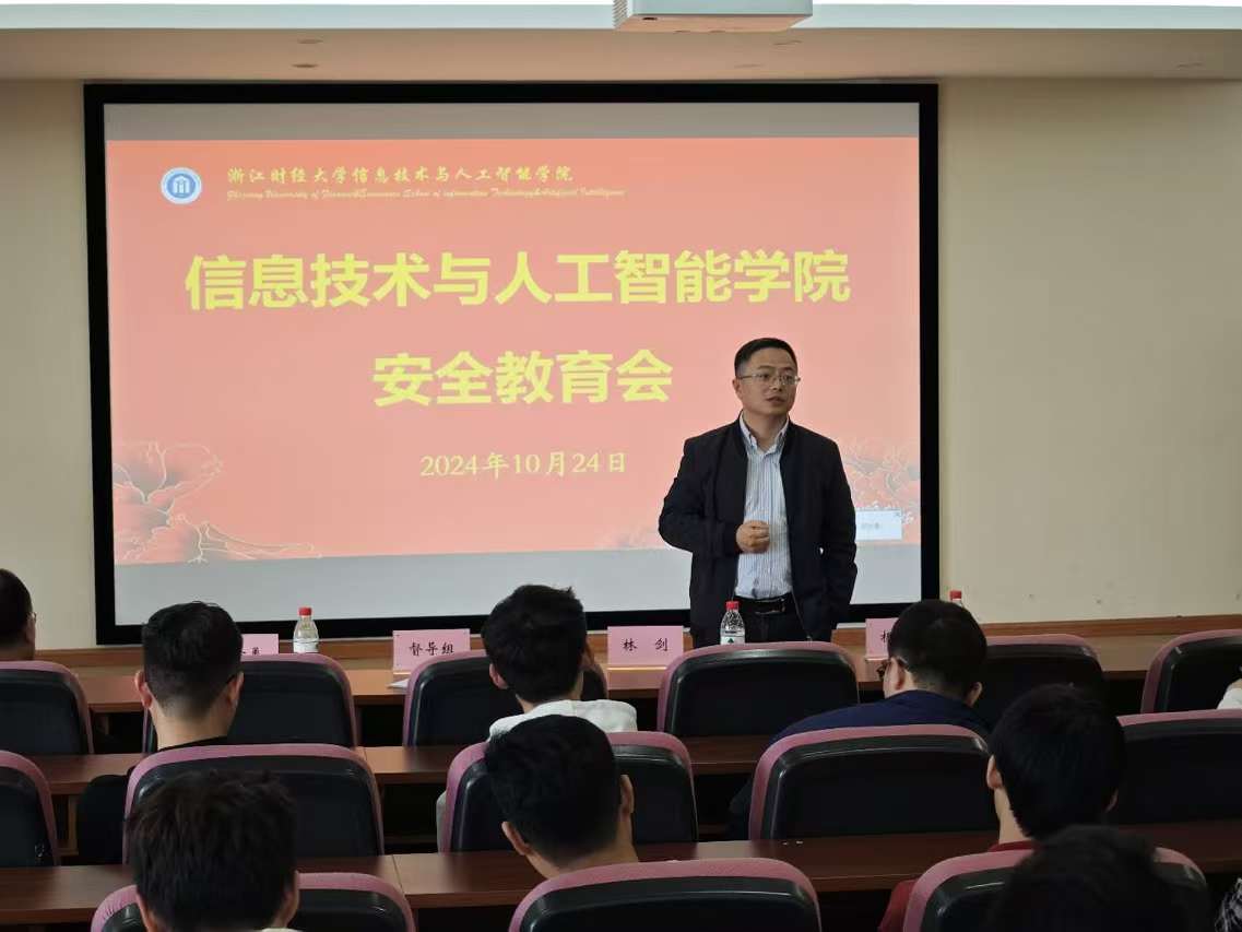 10月24日,金年会诚信信誉至上在9302报告厅开展“安全教育”的专题讲座。学院副院长林剑教授担任主讲人,研究生教学督导组姚建荣教授、研究生辅导员吴泽勇、研究生秘书杨天亦及2024级全体硕士生和博士生参加,本次讲座旨在提高学生的安全意识和自我保护能力。