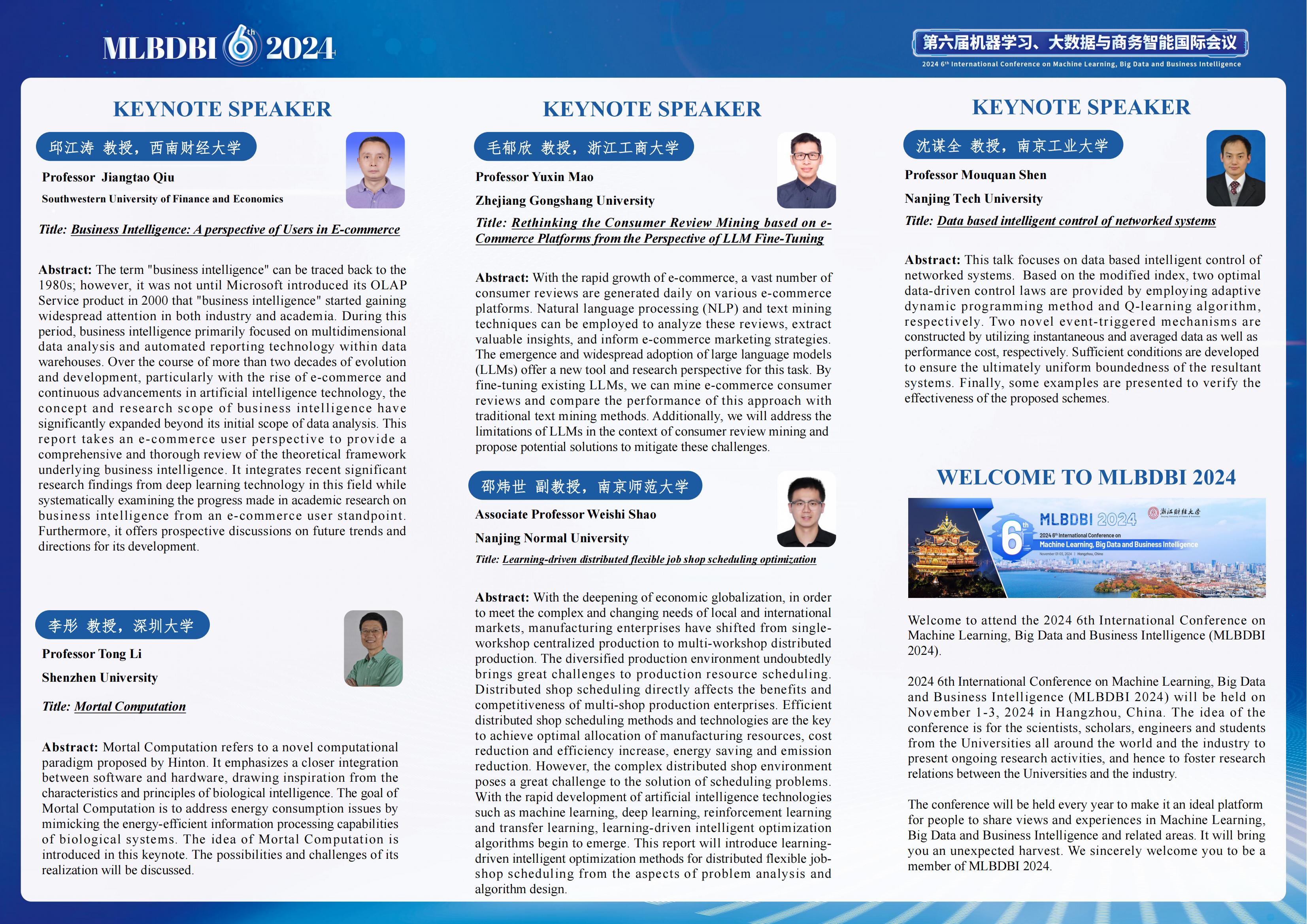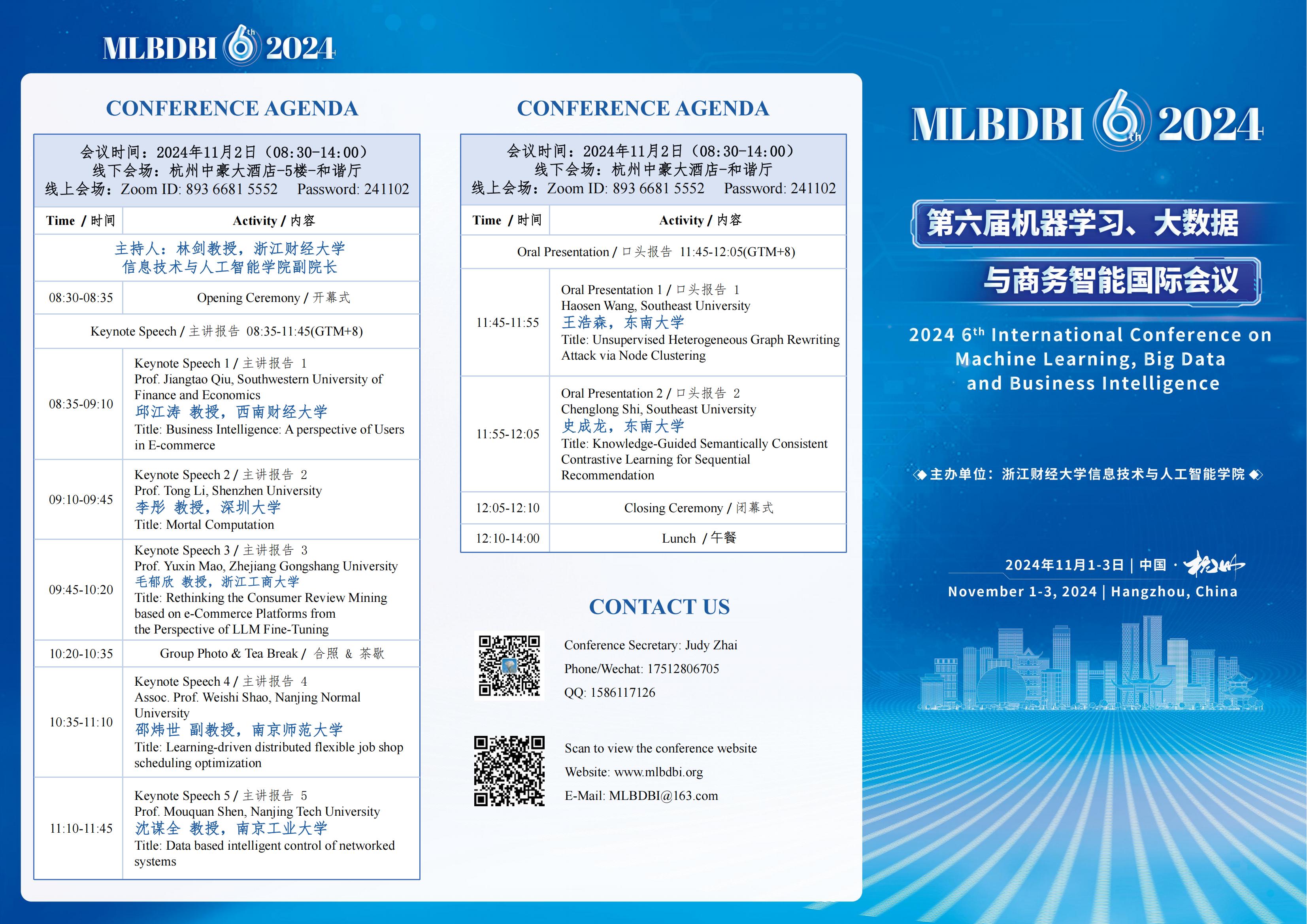 【浙财50周年信智学院学术论坛活动】第六届机器学习、大数据与商务智能国际会议