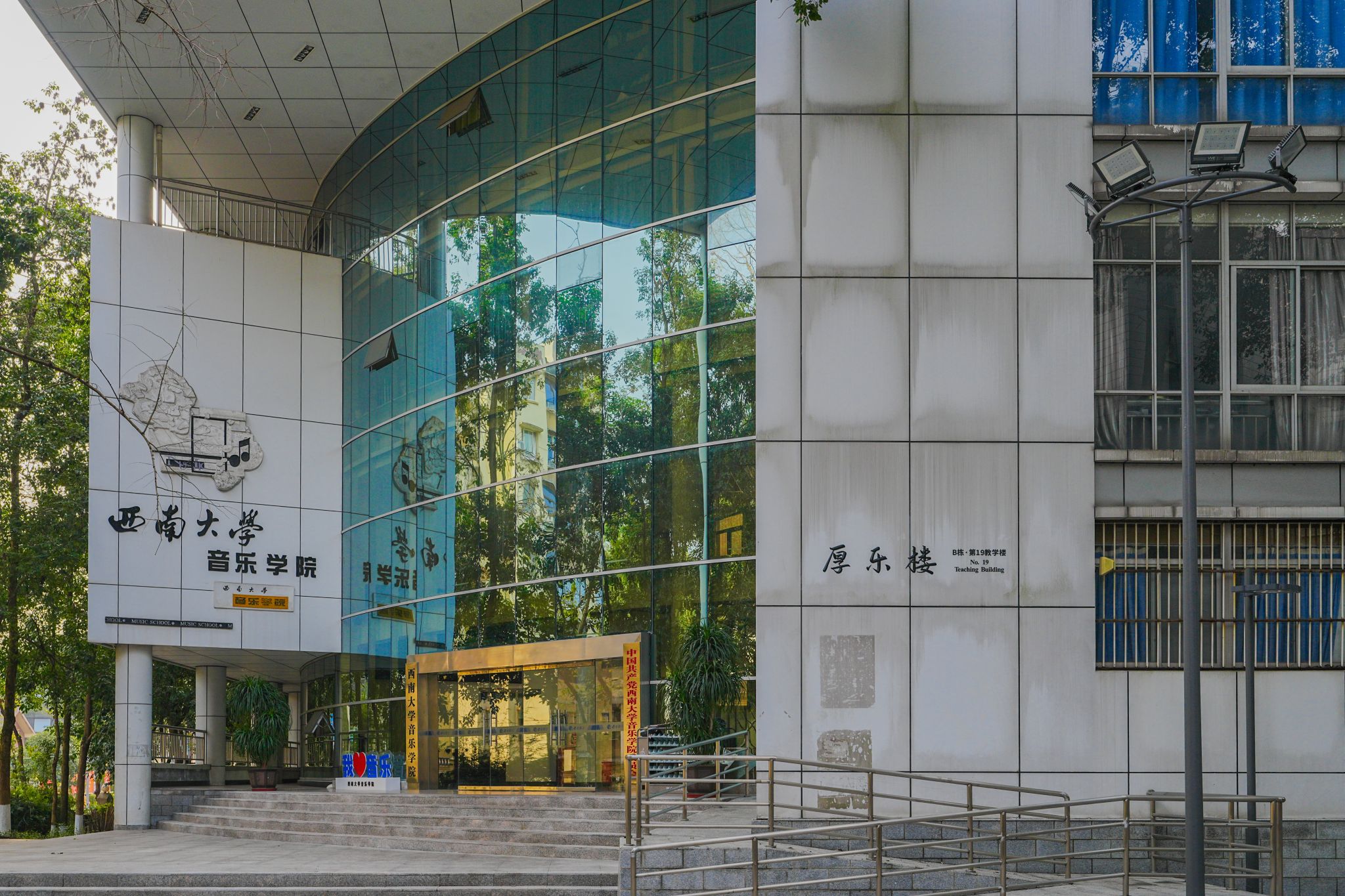 “厚乐楼”,取自易经“地势坤,君子以厚德载物”。“乐”通“悦”,取自易经中的兑卦。A栋落成于1996年,建筑面积5555㎡,现为学校音乐厅和音乐学院教学楼使用。B栋落成于2007年,建筑面积6365㎡,现为音乐学院使用。