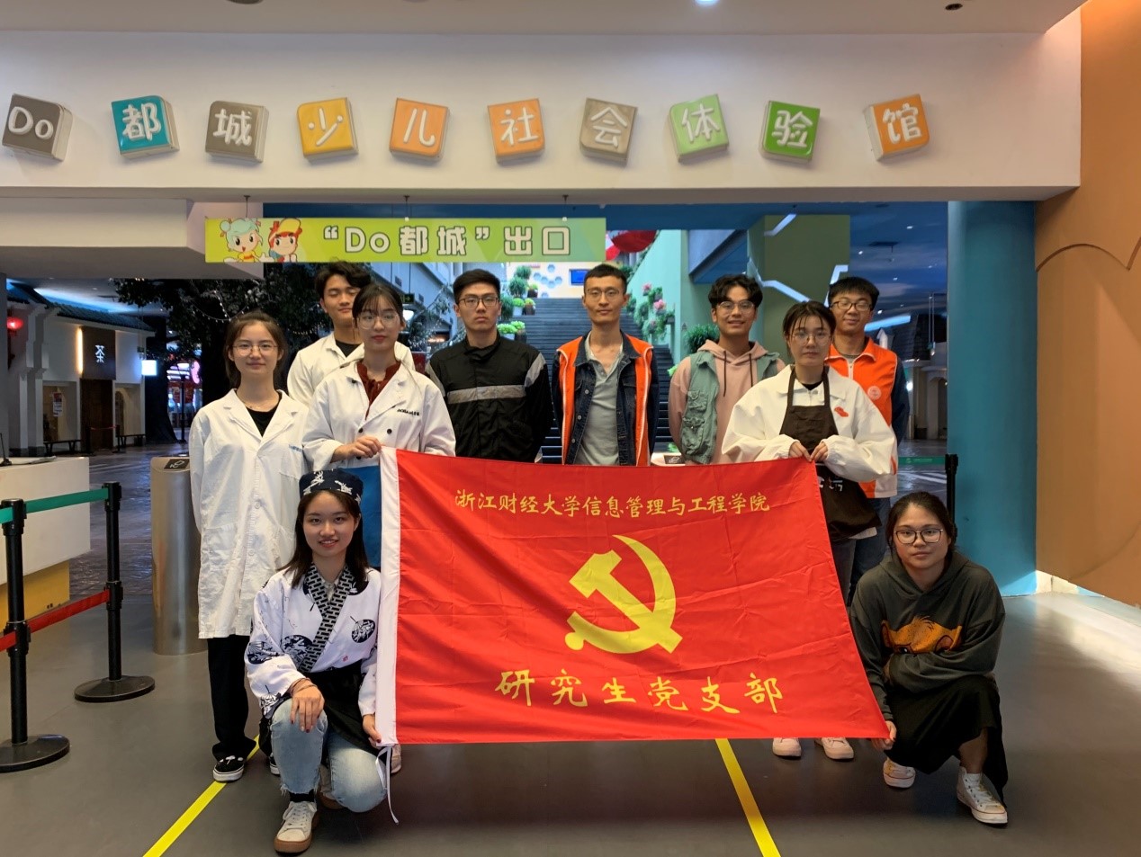 同月13日,为了更好的将主题学习理论融入到实践中去,用专题学习会精神指导实践,信工学院组织研究生党支部党员及入党积极分子,同学院心理工作站的成员们,赴杭州“Do都城”少儿社会体验馆参与了志愿者活动。