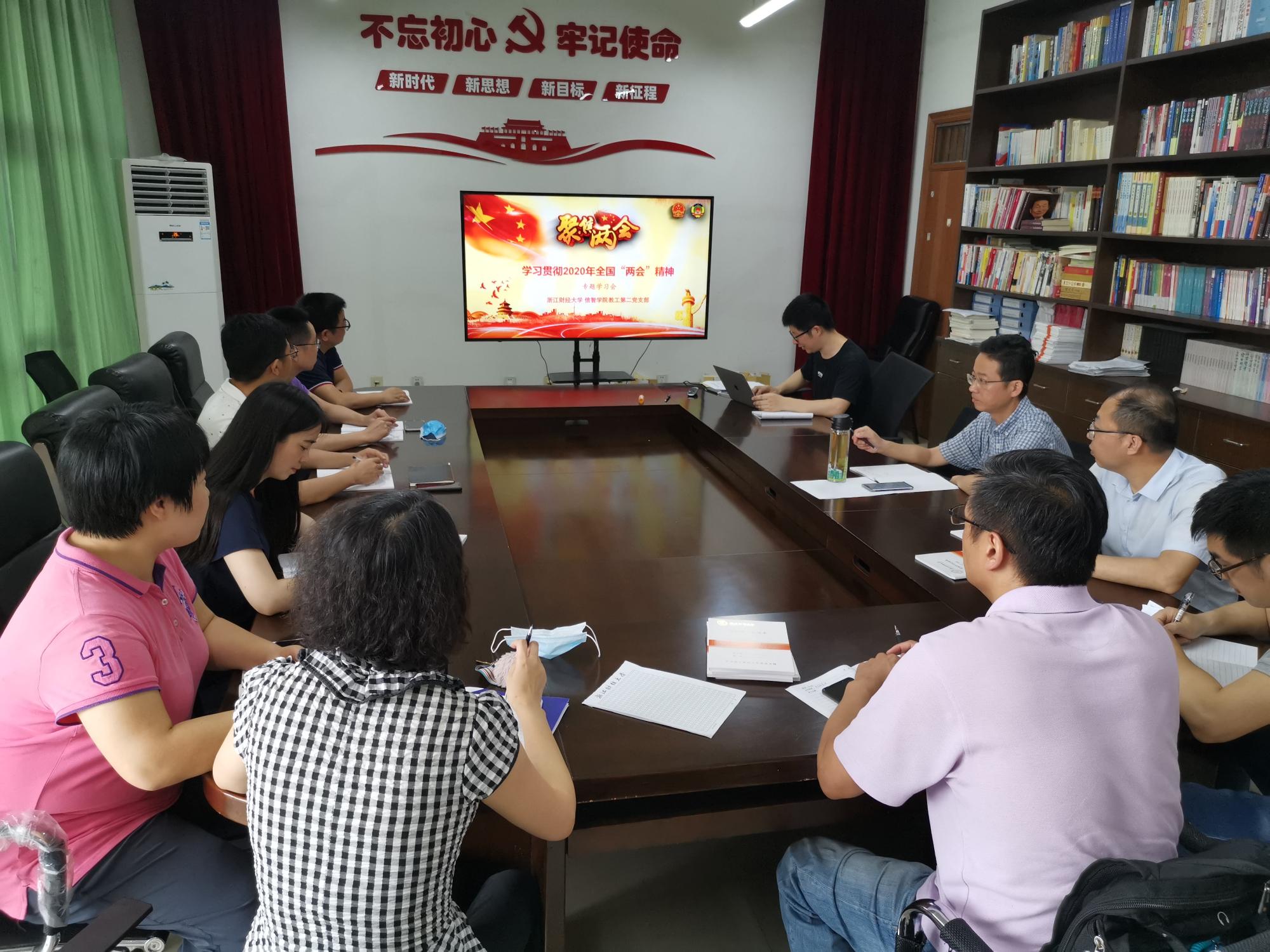 为了深入学习贯彻全国“两会”精神,切实开创教学、科研、育人工作新局面,2020年6月4日,信智学院教工第二党支部在9-506会议室召开“学习贯彻2020年全国两会精神”专题会议,会议由宋海裕主持。