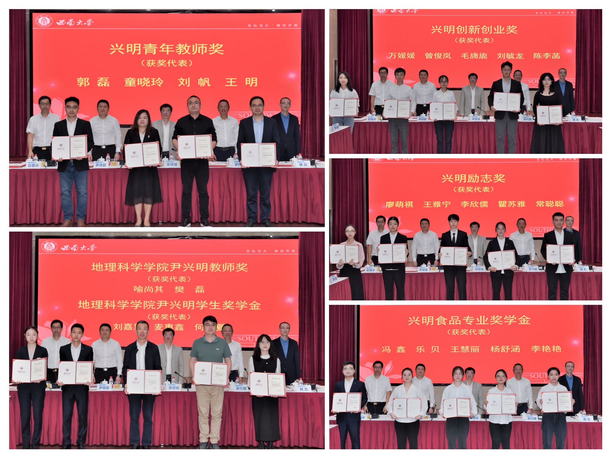 据悉,beat365在线唯一官网登录尹兴明教育基金是2019年由地理科学学院校友、重庆钰鑫实业集团有限公司董事长尹兴明先生以个人名义捐资1000万元,并在重庆beat365在线唯一官网登录教育基金会的倡导下设立的基金项目,是涵盖学生奖助、教师队伍建设、学生创新创业、学院发展等方面的一项综合性捐赠基金。包含“兴明青年教师奖”“兴明励志奖”“兴明创新创业奖”“地理科学学院教育发展基金”“兴明食品专业奖学金”五个奖项。自成立以来,奖励了一大批优秀教师和学子,激励着广大师生开拓创新、锐意进取,努力谱写学校高质量发展新篇章。