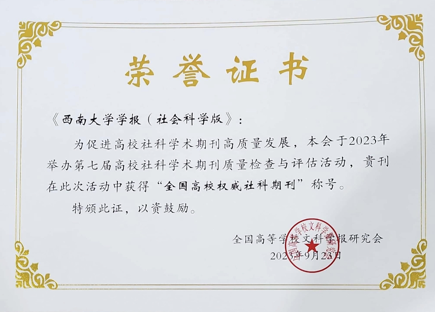 高校社科学术期刊质量检查与评估活动每四年开展一次,由教育部主管的国家一级学会全国高等学校文科学报研究会组织,旨在促进高校社科学术期刊高质量发展。第七届高校社科学术期刊质量检查与评估活动期刊奖分为“全国高校权威社科期刊”“全国高校精品社科期刊”“全国高校优秀社科期刊”“全国高校质量进步社科期刊”四个等次,其中“全国高校权威社科期刊”是首次设立,替代之前的“全国高校社科名刊”成为此项期刊奖的最高层次。获评前两个等次的期刊将入选《全国高等学校人文社科核心期刊目录》。