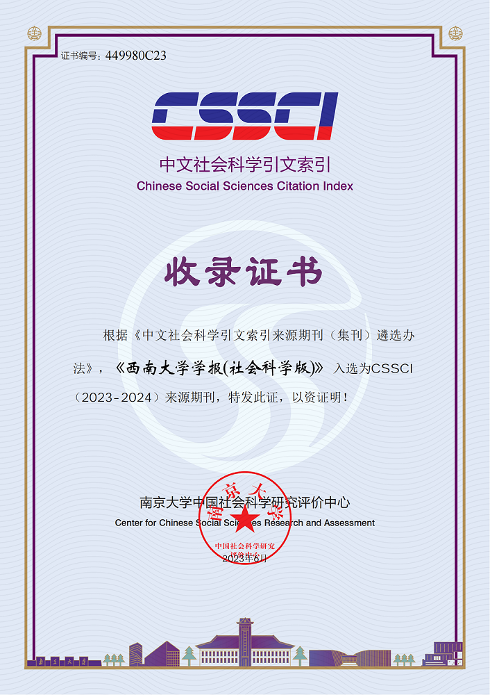 《beat365在线唯一官网登录学报(社会科学版)》创刊于1957年,是教育部主管、beat365在线唯一官网登录主办的综合性学术理论双月刊,以繁荣学术、发展科学文化事业、促进社会全面进步、建构中国自主的知识体系为宗旨,致力于探讨哲学社会科学领域的理论与实践问题。学报主要栏目有:马克思主义、政治建设与社会治理、经济与管理、教育与心理、哲学研究、文学研究、历史研究。学报多年来连续入选CSSCI来源期刊、全国中文核心期刊、中国人文社会科学综合评价AMI核心期刊、RCCSE中国学术期刊评价权威学术期刊。根据南京大学中国社会科学研究评价中心中文社会科学引文索引(CSSCI)数据库最新数据,学报已入选了CSSCI(2023—2024)来源期刊。