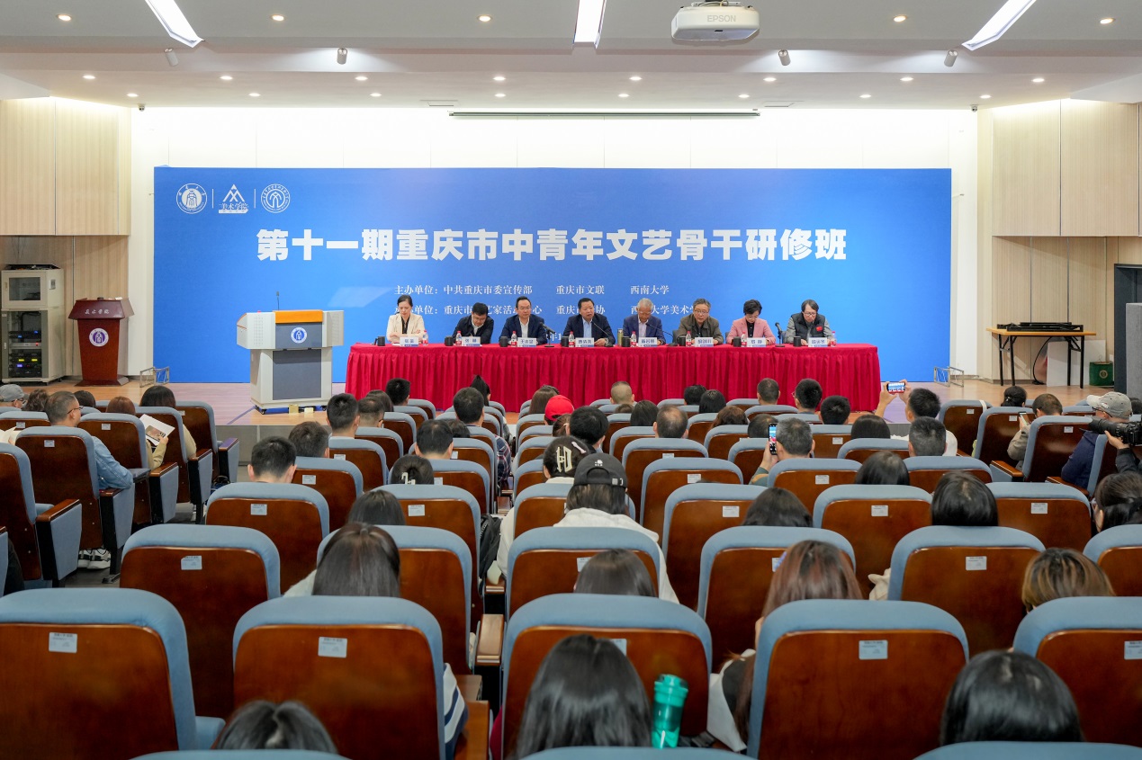 重庆市中青年文艺骨干研修班是市委宣传部和市文联共同打造的重要品牌,此次研修班将继续把握时代脉搏,着力于重庆市中青年文艺骨干的思想建设,以文艺的审美创造展示人类文明新形态的发展方向,推出更多体现时代特征、中国气派、重庆韵味的精品力作,推动重庆市文艺事业繁荣发展。研修班由美术学院具体承办,采取理论教学、交流研讨、实践创作相结合的方式,并赴涪陵、石柱,江津、永川开展采风创作活动与现场实践。