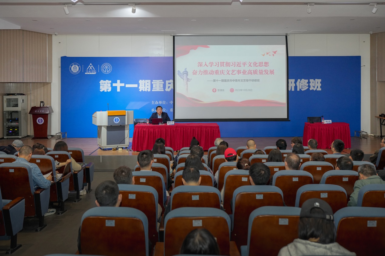 10月28日上午,由重庆市委宣传部、重庆市文联、beat365在线唯一官网登录主办,重庆市文艺家活动中心、重庆市摄协、beat365在线唯一官网登录美术学院承办的第十一期重庆市中青年文艺骨干研修班在学校开班。市委宣传部常务副部长曹清尧,市文联党组书记、副主席陈若愚,学校副校长王志坚,市委宣传部、市文联相关处室负责人,研修班学员,美术学院师生近300人参加开班仪式,开班仪式由陈若愚主持。