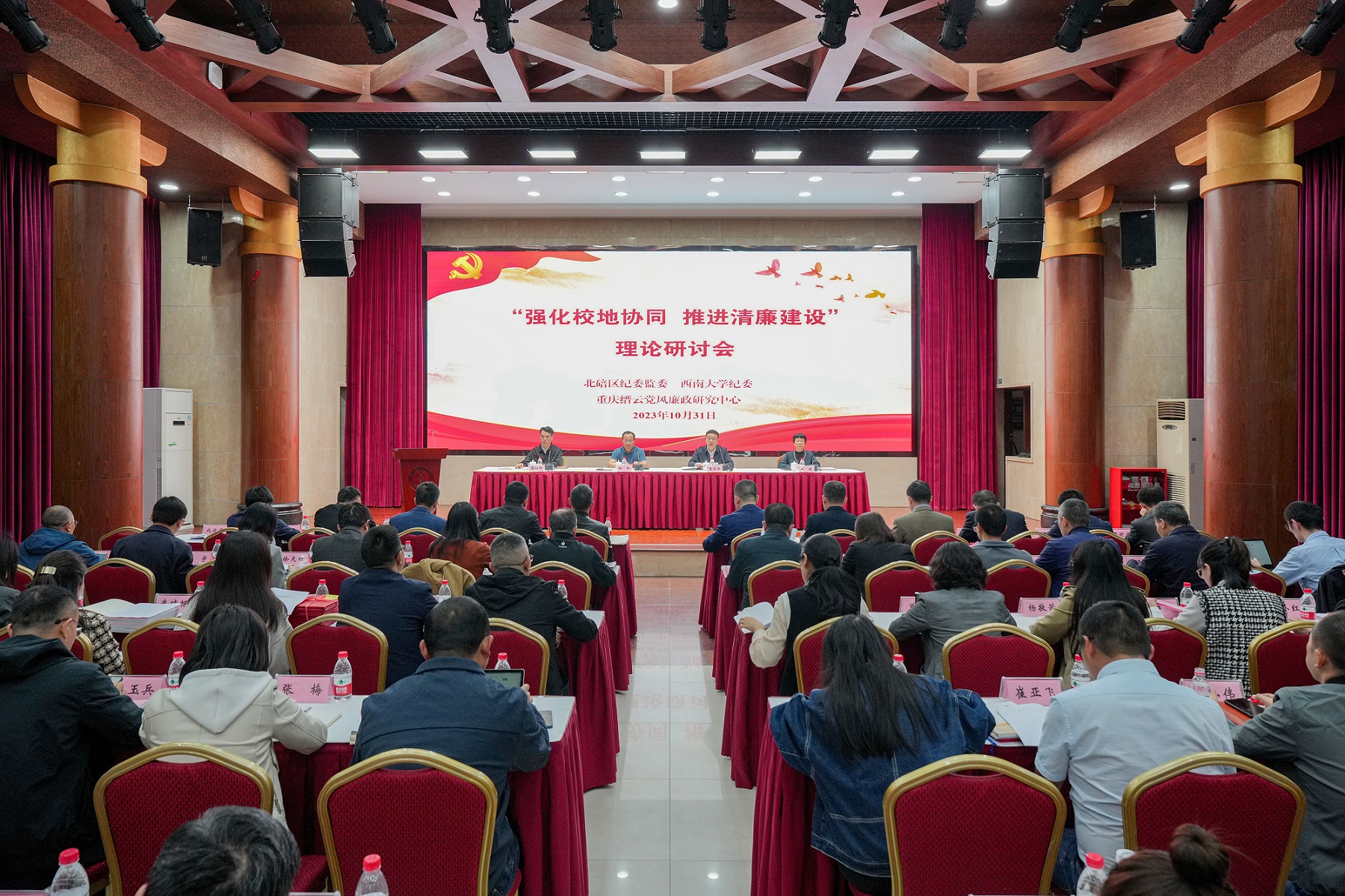北碚区纪委监委、学校纪委部分领导班子成员,重庆缙云党风廉政研究中心研究员,学校纪委委员,纪委办监察处、巡察办全体人员,二级党组织纪委书记、纪检委员,北碚区纪委监委相关部室负责人等100余人参加会议。