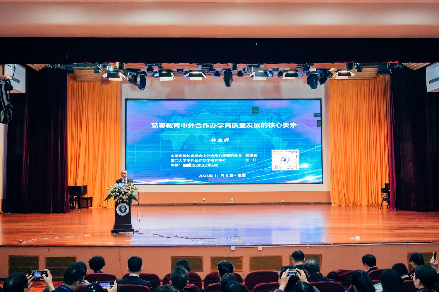 为深入学习贯彻党的二十大精神和习近平新时代中国特色社会主义思想,落实“推动成渝地区双城经济圈建设”国家战略,提升成渝地区高校中外合作办学质量,11月3日,由重庆市教委、四川省教育厅联合主办,学校承办的首届成渝地区中外合作办学研讨会如期举行。来自成渝两地共83所高校的190余位会议代表齐聚一堂,共同探讨对中外合作办学的理解和实践。