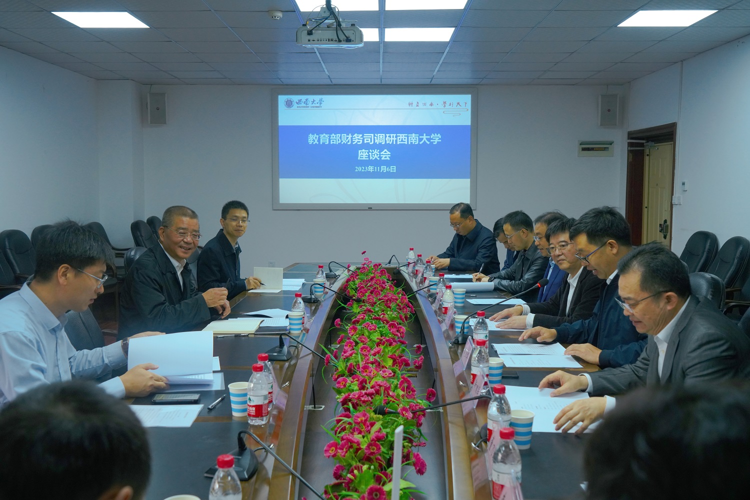 重庆市教委财务处负责同志,学校党政办公室、发展规划与学科建设部、人力资源部、财务部、审计处、后勤保障部、附中、附小等单位负责同志参加了调研座谈会。