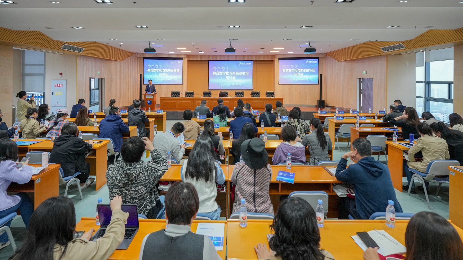 11月8日,2023年重庆市教育数字化与未来图书馆研讨会在beat365在线唯一官网登录图书馆15楼报告厅召开。研讨会由重庆市高校图工委主办,学校图书馆承办。来自重庆29所高校、机构的近100名业界知名专家、图书馆馆长和行业同仁齐聚一堂,共同探讨教育数字化背景下高校图书馆转型发展,为智慧图书馆和未来学习中心建设提供新理念、新思路和新方案。