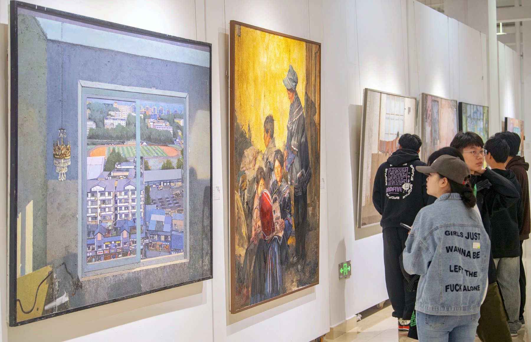 本次展览以“同行·共振”为主题,寓意“与国家同行,与时代共振”。展览面向全校本科生和研究生征稿,经专家组集中评审,评选出一等奖作品9件、二等奖作品23件、三等奖作品39件、优秀奖作品116件。展出的187件作品呈现了学生艺术创作实力和学术创新成果,展示了青年一代学生扎实的艺术功底、敏锐的创作意识和深厚的家国情怀,体现了观照自然、热爱祖国、扎根人民的艺术观与创作观,彰显了学校青年学生的智慧与激情、创造力和想象力。这既是一次学生课程思政以及美育成果的集中展现,也是新时代美术教育“青蓝相接,为往圣继学”的重要对话。