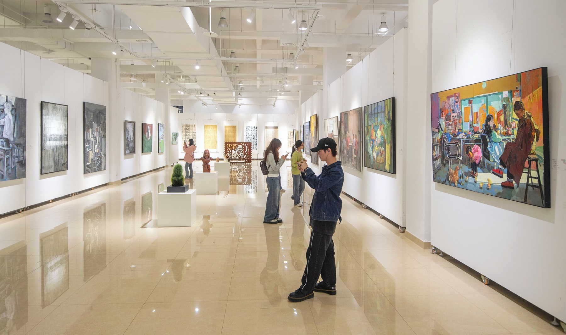 11月9日上午,“同行·共振”beat365在线唯一官网登录第三届学生美术作品双年展在学校博物馆开幕。学校党委副书记黄杰出席开幕式,党政办公室、党委宣传部、团委、教务处、党委研究生工作部、党委学生工作部、博物馆、创新创业学院等职能部门负责人,学校师生代表等500余人参加开幕式。