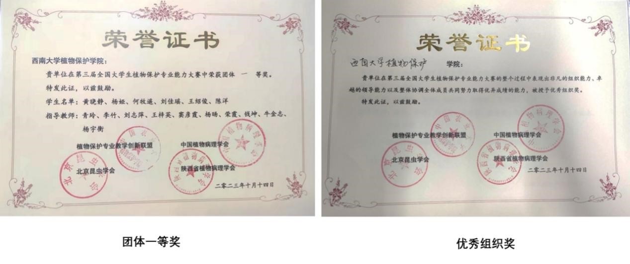 10月13日至15日,第三届全国大学生植物保护能力大赛在西北农林科技大学举行。此次比赛共设置了四个模块七个项目,beat365在线唯一官网登录植物保护学院青玲教授带队,共5名教师和6名学生参加比赛,荣获团体一等奖和优秀组织奖,并在昆虫解剖与绘图、昆虫微景观展示和现场标本制作等单项比赛中取得特等奖1项、一等奖1项、二等奖2项、三等奖1项的优异成绩。