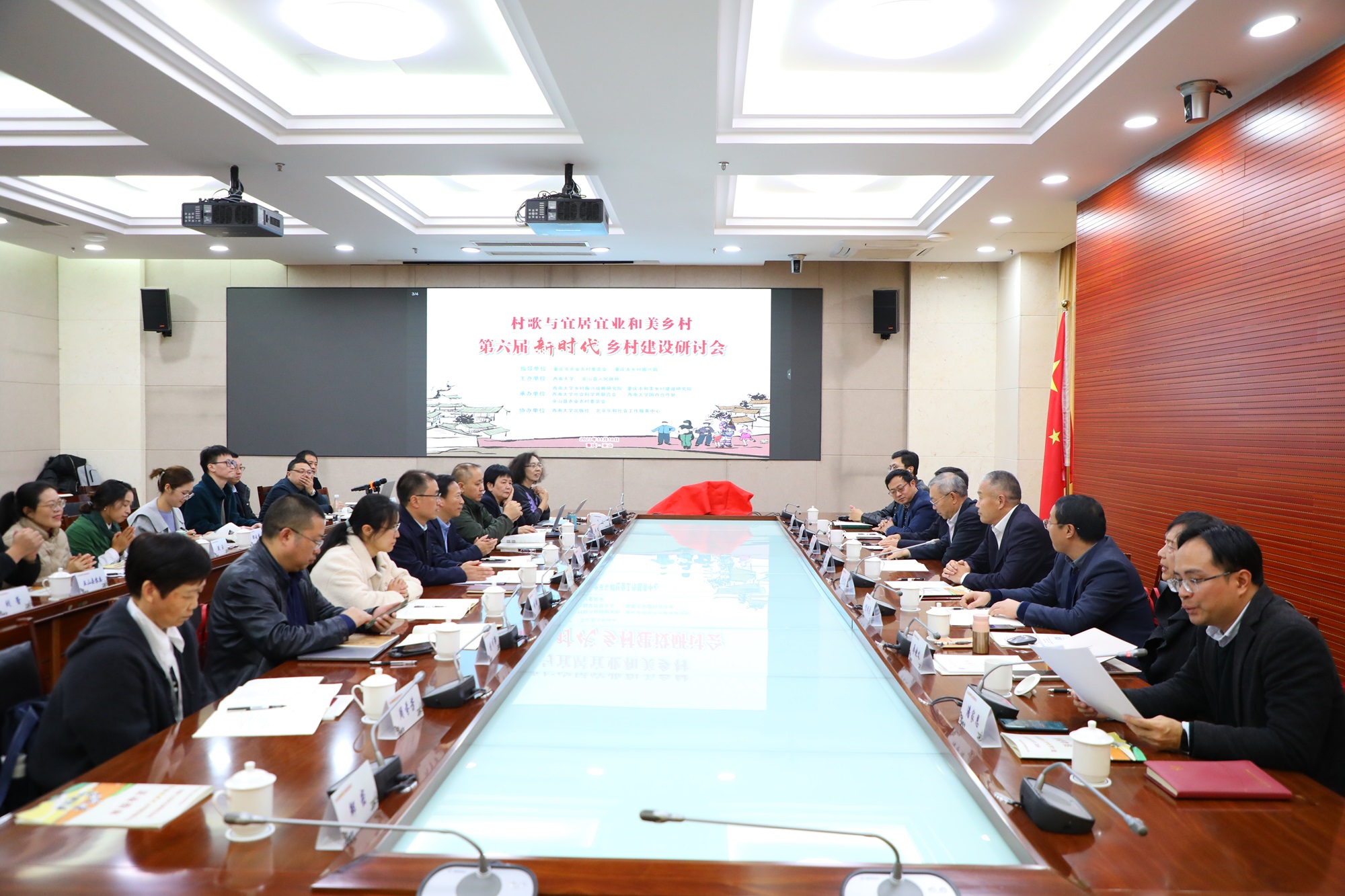 11月18日,在重庆市农业农村委员会和重庆市乡村振兴局的关心指导下,学校与巫山县人民政府共同举办主题为“村歌与宜居宜业和美乡村”的第六届新时代乡村建设研讨会暨beat365在线唯一官网登录出版社2023年度新书《村歌嘹亮》与《我们的村歌》发布会。学校副校长葛信勇、巫山县人大常委会副主任宋传勇出席论坛,巫山县有关单位、重庆市和美乡村建设研究院、北京乐和社会工作服务中心以及学校国内合作处、学校出版社等参加活动。