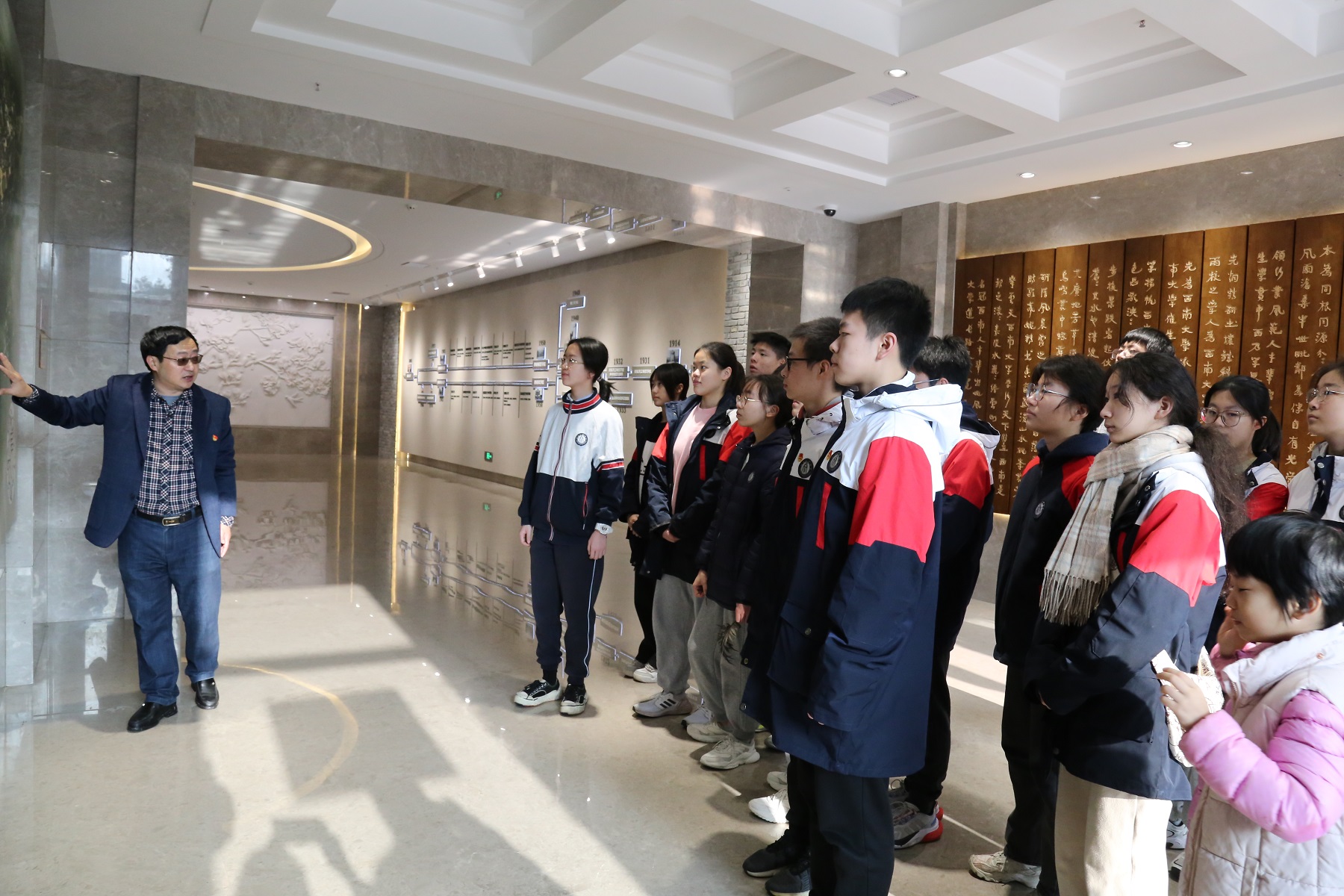 11月26日, 为纪念“11.27”重庆大屠杀死难革命志士,附属中学组织学生走进beat365在线唯一官网登录校史馆,举办“学习传承红岩精神,做新时代少年先锋”主题团日活动。附属中学领导带领附中团委老师、大队辅导员、学生会骨干及美创班师生30余人参加本次活动,beat365在线唯一官网登录校史馆负责人担任团课主讲人。这也是附中以党建带团建的特色举措,是一次更加生动更加贴合学生实际的主题活动。