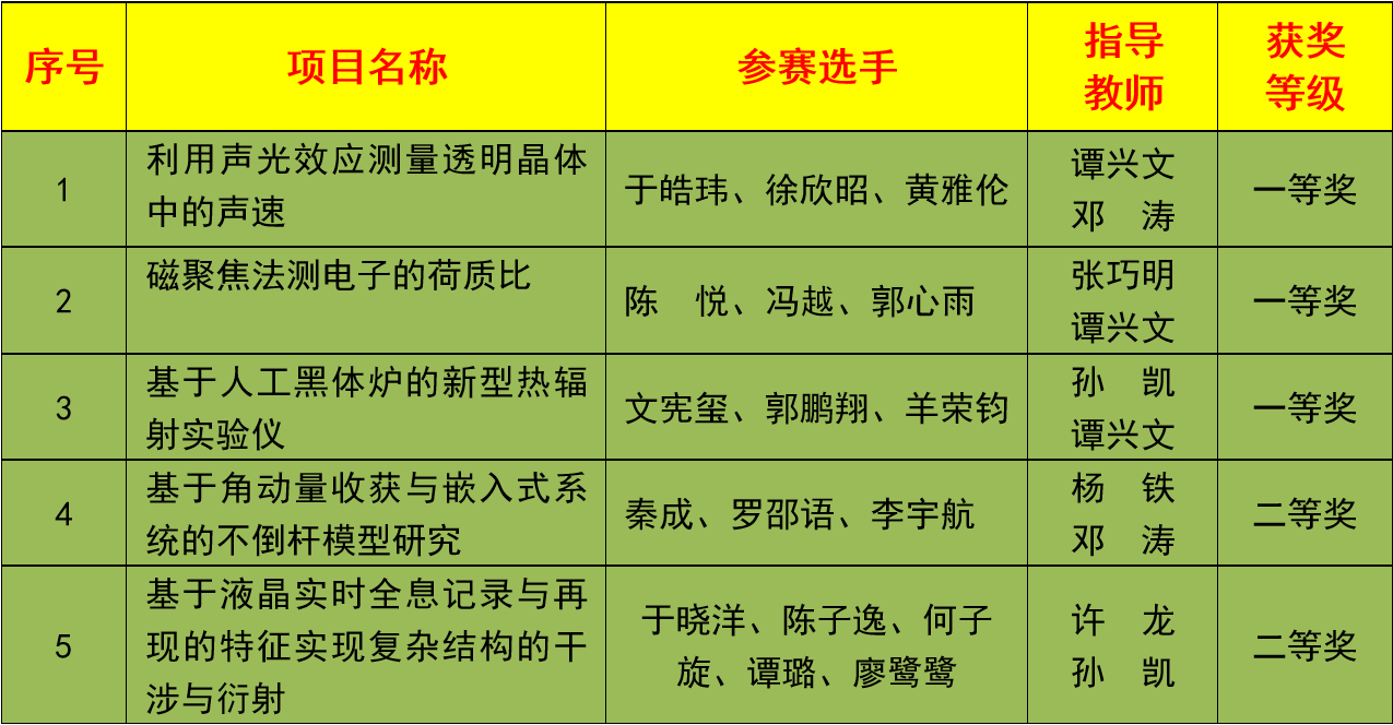 学校在2023年全国大学生物理实验竞赛(创新)中获5项大奖