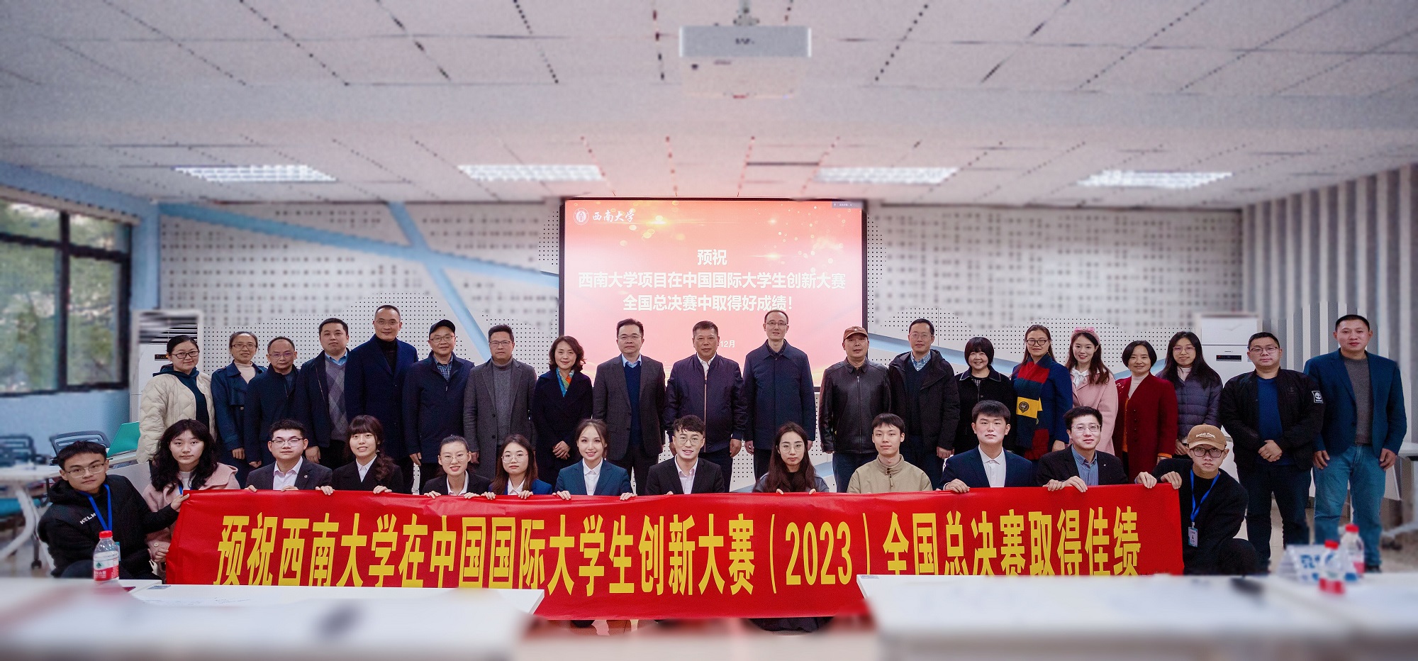 12月3日至6日,中国国际大学生创新大赛(2023)决赛阶段现场比赛在天津大学举行。学校参赛团队表现优异,斩获5金4银4铜,实现主赛道(国内+国际项目)和红旅赛道金奖全覆盖,金奖数创历史新高!排名位居全国高校前列,重庆市第一。此外,学校上一届国赛金奖“木苏新材”项目受邀参加优秀项目资源对接会暨落地项目签约仪式,并现场签约。