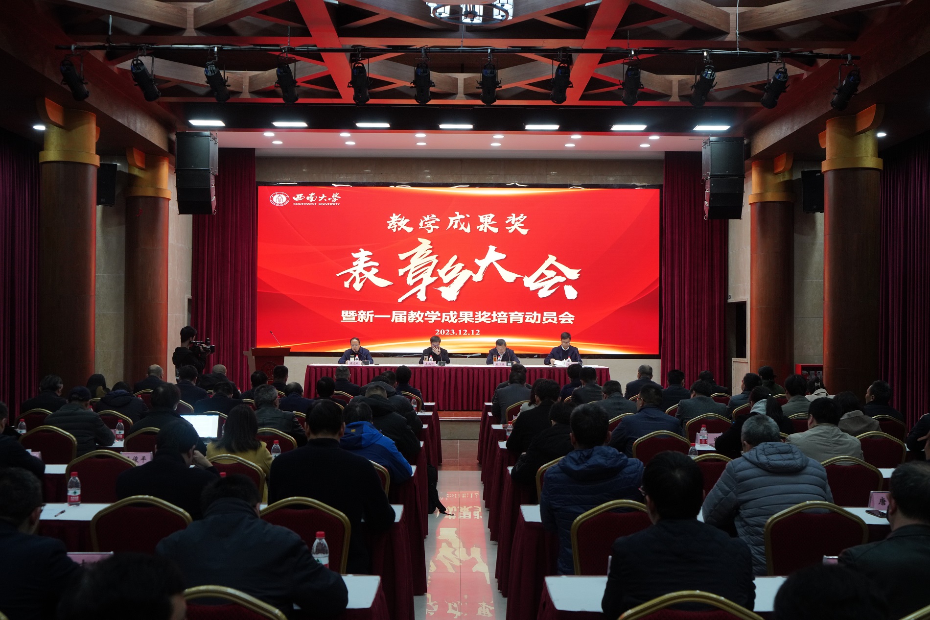为全面贯彻落实党的二十大精神,激发广大教师、教育工作者的教育教学研究热情,进一步做好新一届教学成果奖的培育工作,推进学校教育教学高质量发展,12月12日下午,学校召开教学成果奖表彰大会暨新一届教学成果奖培育动员会。学校党委书记李旭锋,校长张卫国,副校长周光明、赵国华出席会议。学校各职能部门、二级学院(部)主要负责人及2022年国家教学成果奖、2021年重庆市教学成果奖获奖团队代表参加会议,会议由周光明主持。