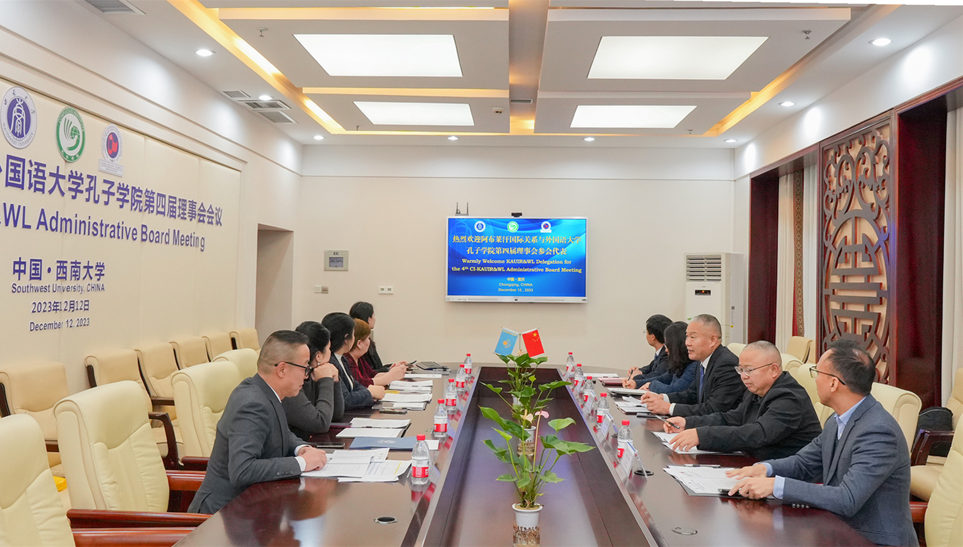 12月12日,学校合作共建的哈萨克斯坦阿布莱汗国际关系与外国语大学孔子学院第四届理事会会议在学校召开。beat365在线唯一官网登录副校长葛信勇,阿布莱汗大学副校长扎纳尔·热尔特罗娃出席会议,两校相关单位负责人以及孔子学院中方院长参加会议。这是近三年来两校首次线下举行孔子学院理事会会议。