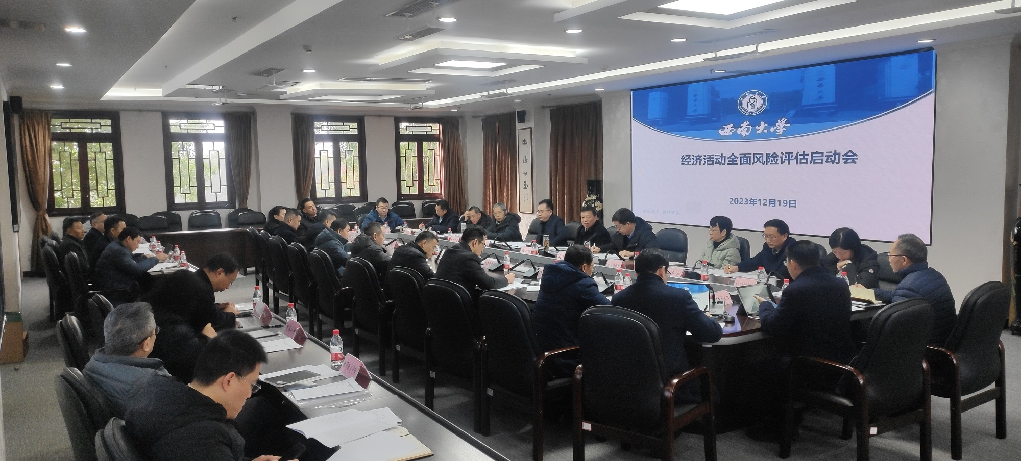 12月19日上午,学校在行署楼第五会议室召开beat365在线唯一官网登录经济活动全面风险评估启动会,动员部署相关工作。校长张卫国出席会议并讲话,副校长赵国华主持会议。beat365在线唯一官网登录经济活动全面风险评估责任部门主要负责人及审计处相关工作人员参加会议。