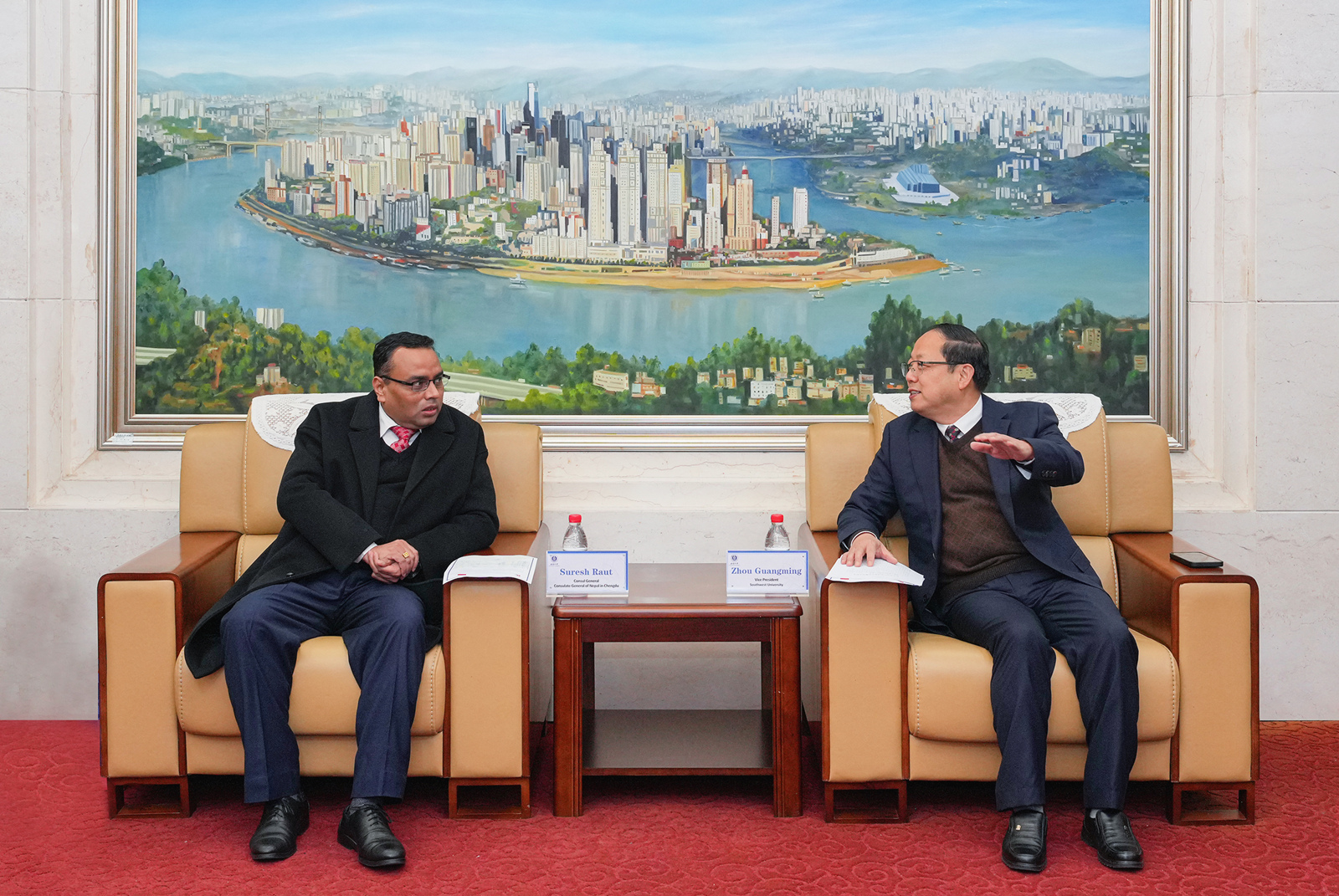 1月24日,尼泊尔驻成都总领事馆总领事苏雷什·劳特(Suresh Raut)、领事曼哈里·丹加尔(Manhari Dangal)一行4人来校访问,副校长周光明会见了客人。市政府外办亚洲处副处长唐悦,学校督查办公室、国际合作与交流处、继续教育学院有关负责人参加会见。
