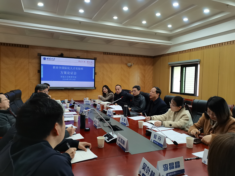 教育学部从人才定位、前期基础、工作设想、培养方式、待解决问题等方面汇报了“教育学国际化人才实验班”的初步构想。相关部门参会人员围绕如何推进实验班建设,从优化培养模式、精准选拔学生、做好课程衔接、加强国际交流、统筹经费使用等方面提出了建议。