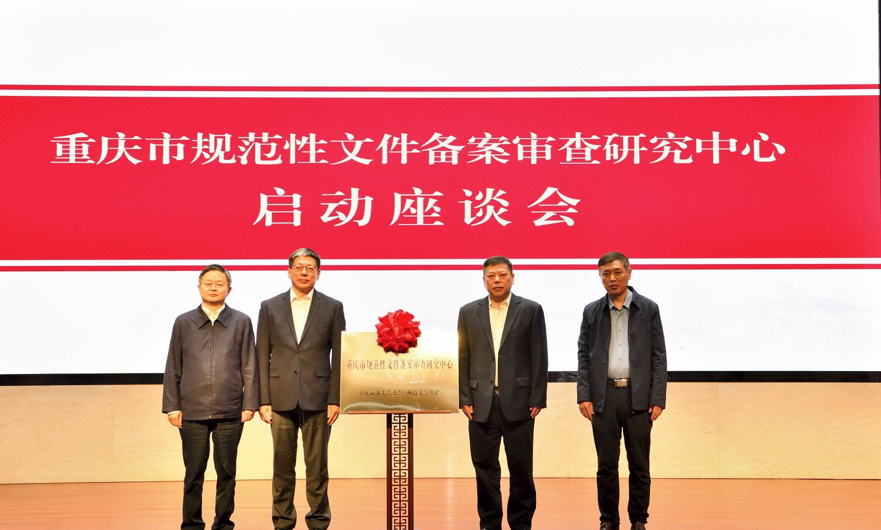 重庆市人大常委会备案审查工委副主任黄谷、学校法学院院长叶金育依次作表态发言,表示将按照“一年打基础、两年见成效、五年创品牌”的建设进路,分步有序推进研究中心建设,竭力为重庆规范性文件备案审查工作及研究提质增效贡献力量,为国家层面备案审查立法及制度建设贡献智慧,为构建备案审查自主知识体系与特色学科建设提供新范式。