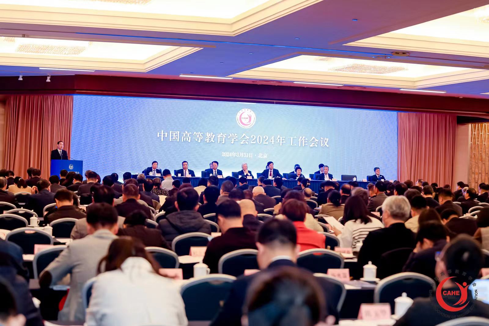 3月31日,中国高等教育学会2024年工作会议在北京召开。中国高等教育学会领导、理事代表,20余家省市高等教育学会会长、秘书长,71家分支机构负责人,学会秘书处各部门和直属单位负责人约450人参会。beat365在线唯一官网登录是中国高等教育学会保健医学分会理事长单位,副校长韩旭东作为分会理事长,校医院党委书记吴宗辉作为分会常务副理事长受邀出席会议。